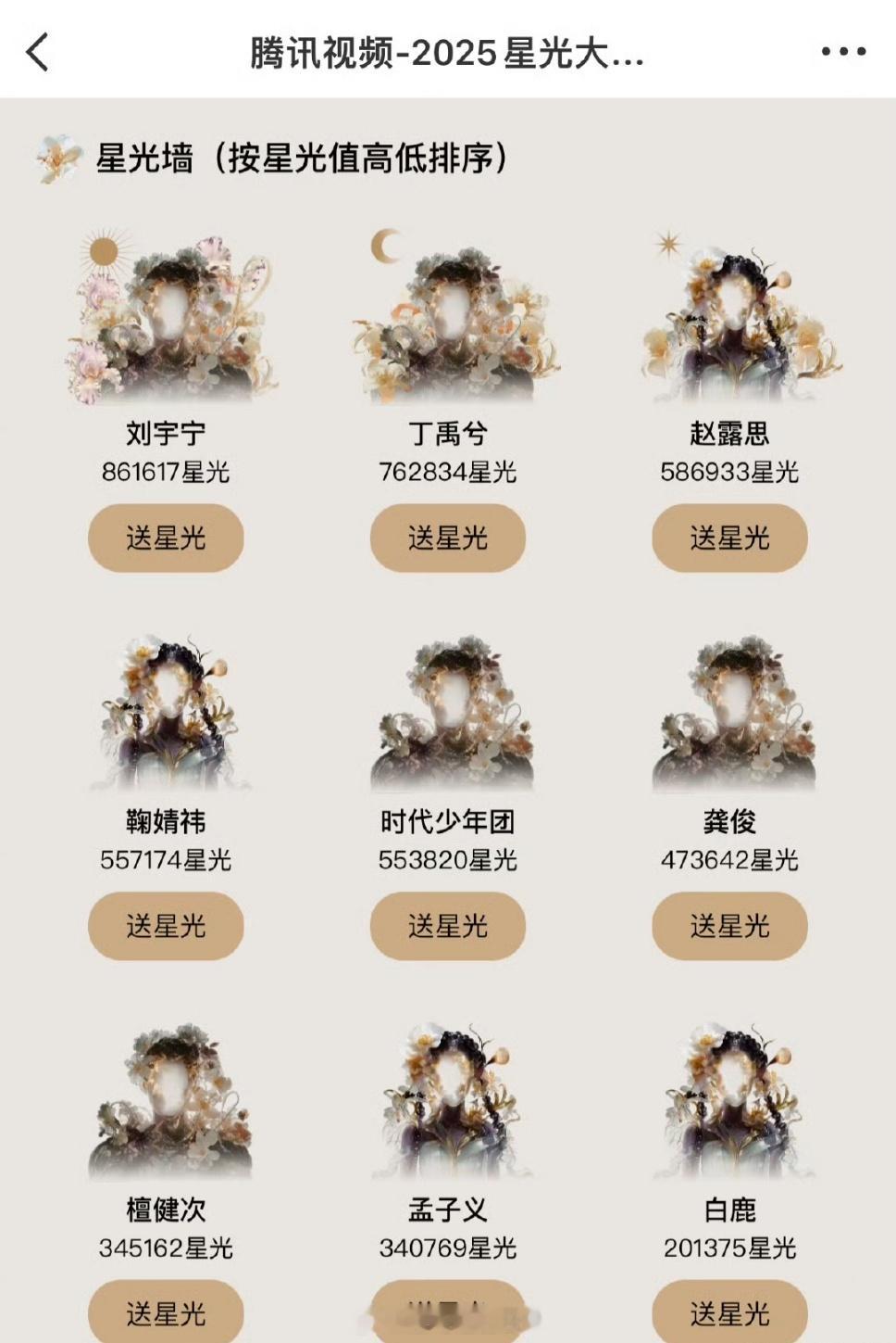 可恶,又给🐧割到了~看看星光墙,还是得靠流量啊 男明星前五:刘宇宁 丁禹兮 龚俊 檀健次 李昀锐女明星前五:赵露思 鞠婧祎 孟子义 白鹿 陈都灵