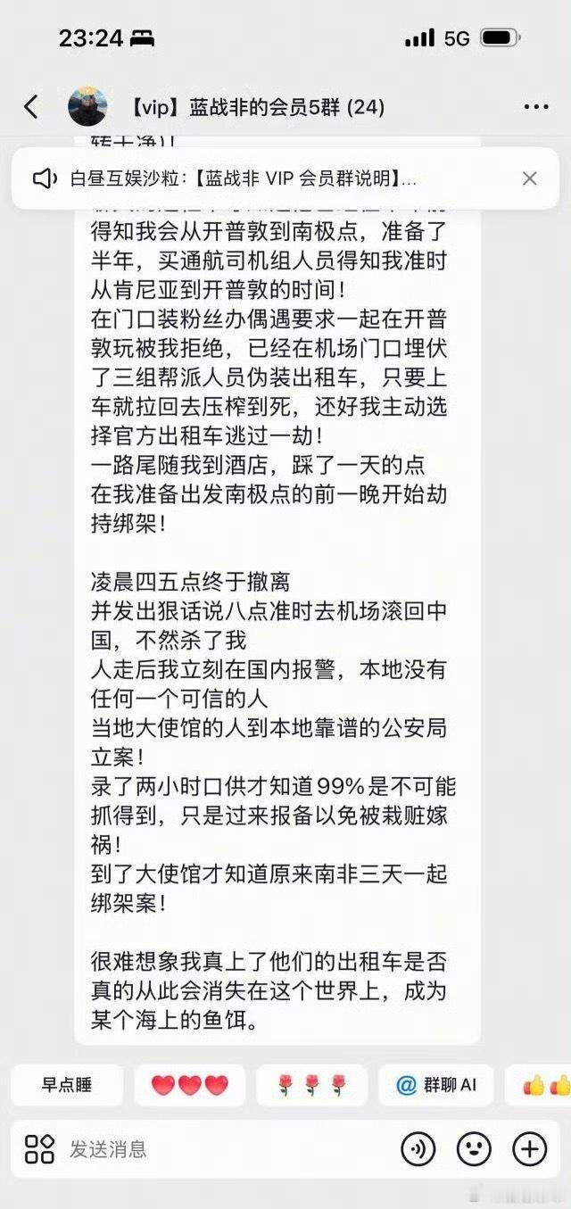 蓝战非被绑架在南非被绑架……而且绑匪还是中国人众所周知南非的治安状况,基本是有点价值的人都会带个保镖,非哥这也是心大好在人是安全的,钱不钱的倒是无所谓了~