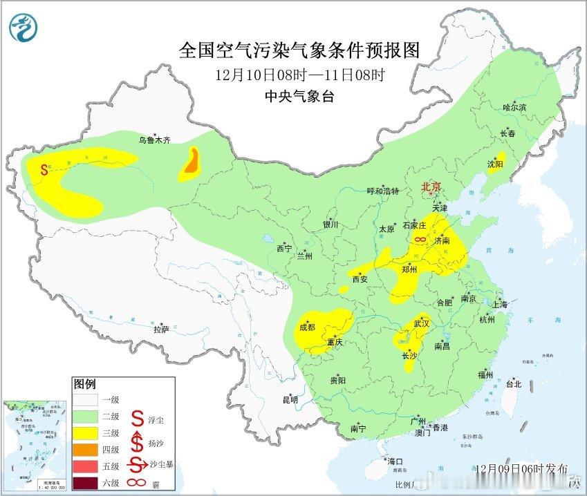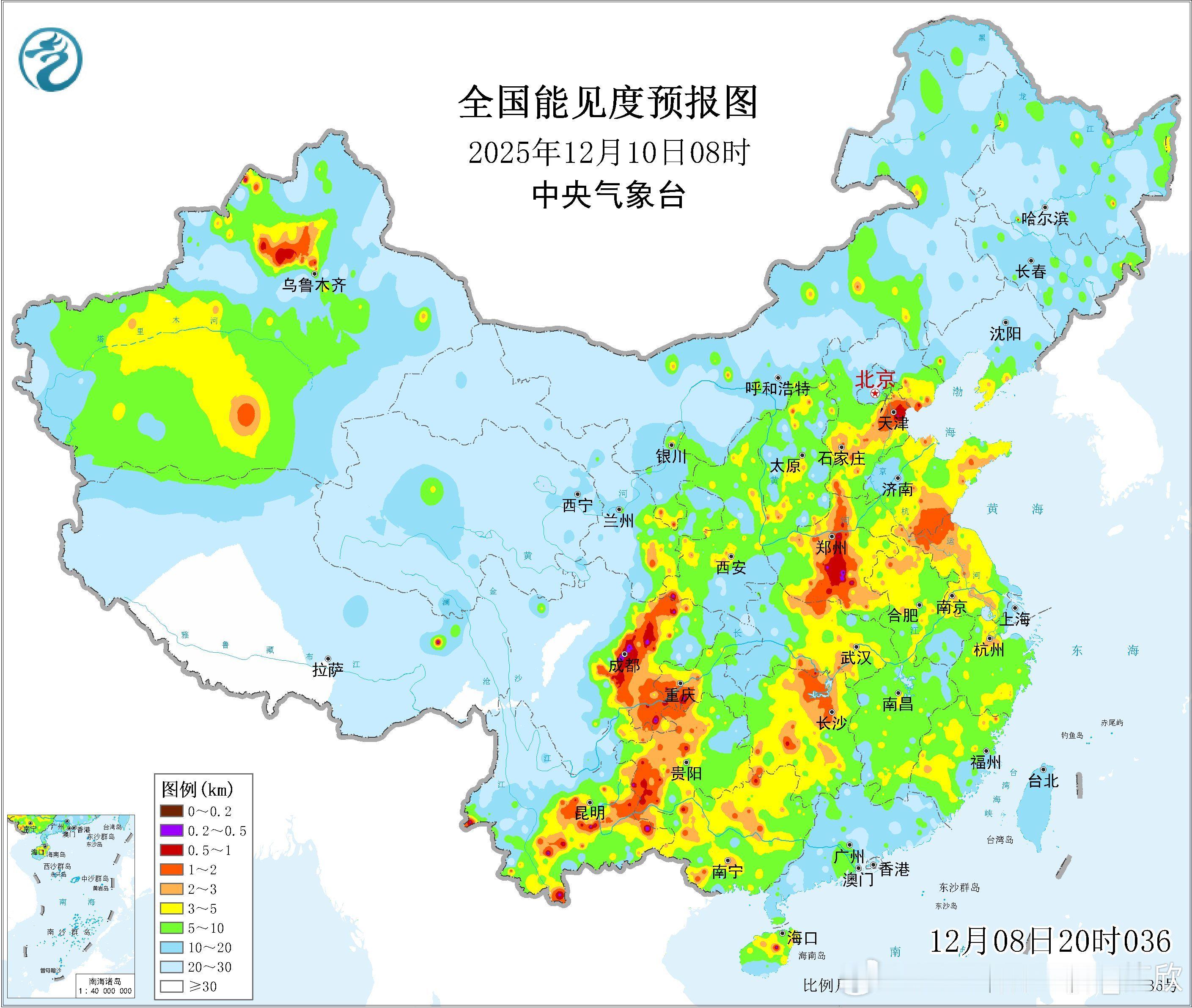 【雾和霾】今晨在四川盆地、江南华南等地依然出现了大雾,部分站点出现能见度不足200米的强浓雾。8时能见度较差站点有:宁夏六盘山54米、云南易门72米、孟连148米、陇川170米、湖北随县87米、安徽泾县88米、黄山区148米、广东德庆101米、大埔129米、郁南185米、贵州大方121米、广西三江123米、东兰143米、宁明154米、福建将乐146米。从数值预报看,明晨在西南地区东部、黄淮等地可能还有雾。此外,今晨在湖南湖北河南,也就是华中一带,空气质量存在轻度-中度污染,有霾。未来霾可能部分滞留,部分随着南风北上。等12日降水和冷空气带来,大气扩散条件和空气质量会明显改善。