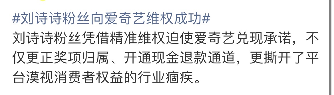 刘诗诗粉丝向爱奇艺维权成功刘诗诗粉大受好评 刘诗诗东方淮竹获爱奇艺补偿