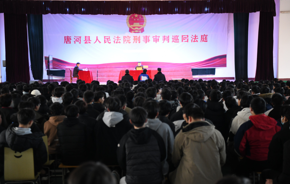 12月4日下午,河南省唐河县人民法院将法庭“搬”到宛东中专,通过“现场庭审+法治讲座”的形式,为全校千余名师生带来了一堂庄严而生动的“法治公开课”。