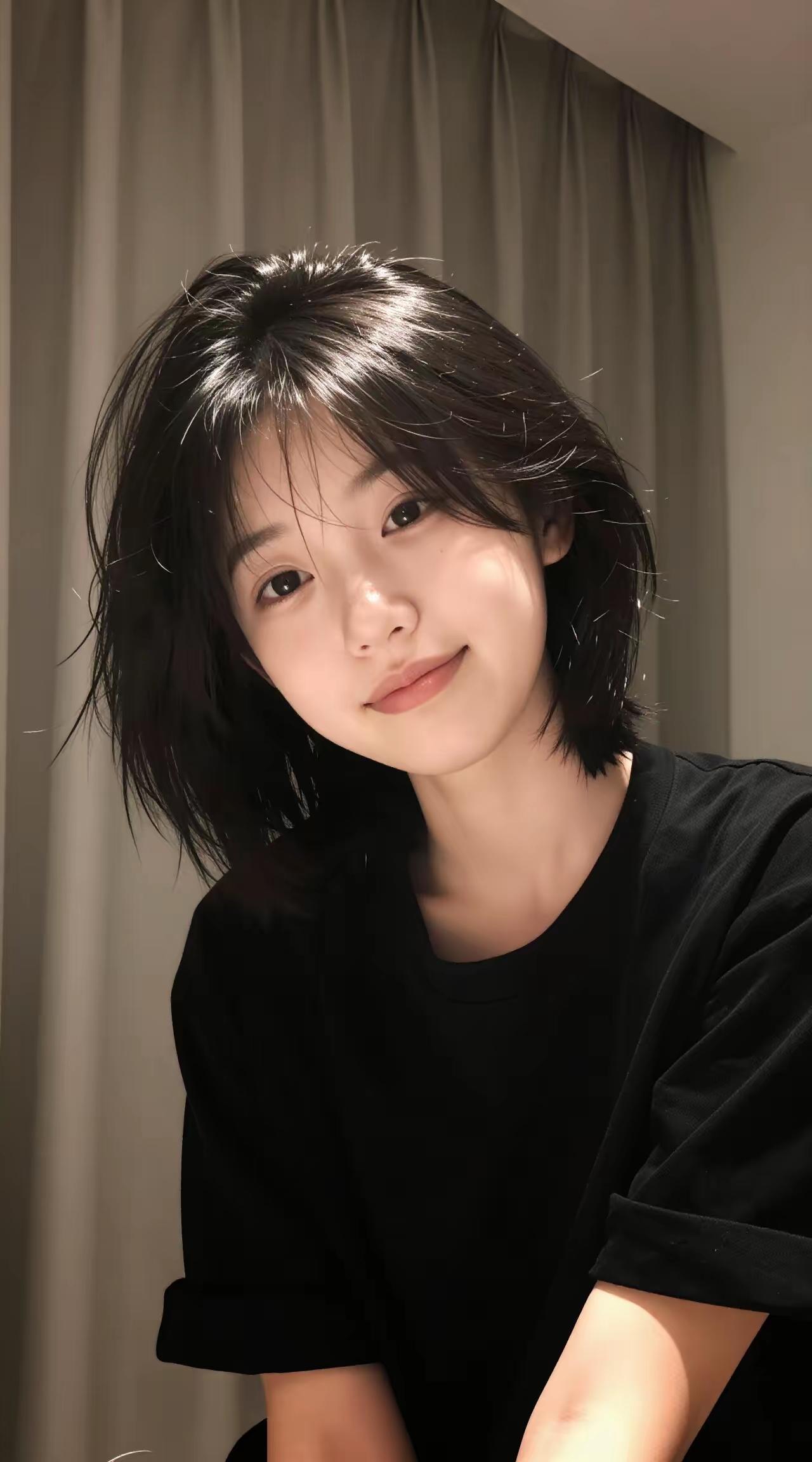 黑发如云,凝眸似水。这款发型不错哦,虽然有点凌乱,但是有质感短头发的气质