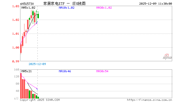 家居家电ETF(515730)业绩比较基准为中证家居家电指数收益率,管理人为永赢基金管理有限公司,基金经理为储可凡,成立(2025-11-14)以来回报为2.70%。