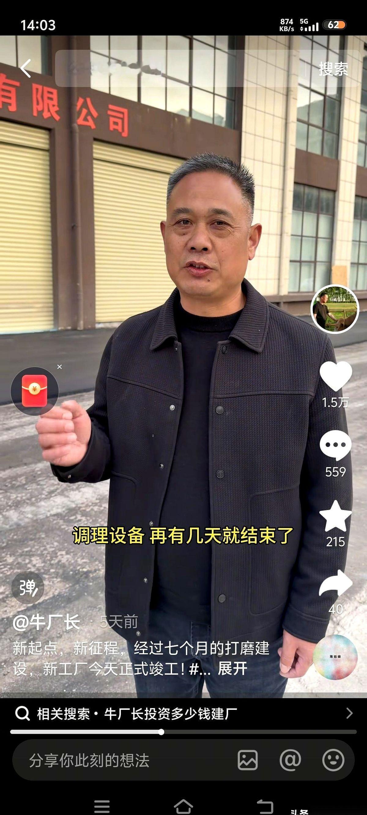 刷到老牛那一个亿产值的新厂,底下全是叫好的,真替他高兴。 可我心里吧,就惦记着一