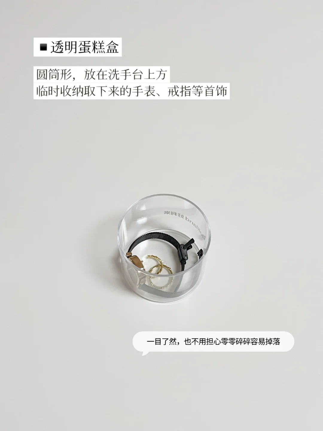 圆筒形,放在洗手台上方。临时装取下来的手表、戒指等首饰