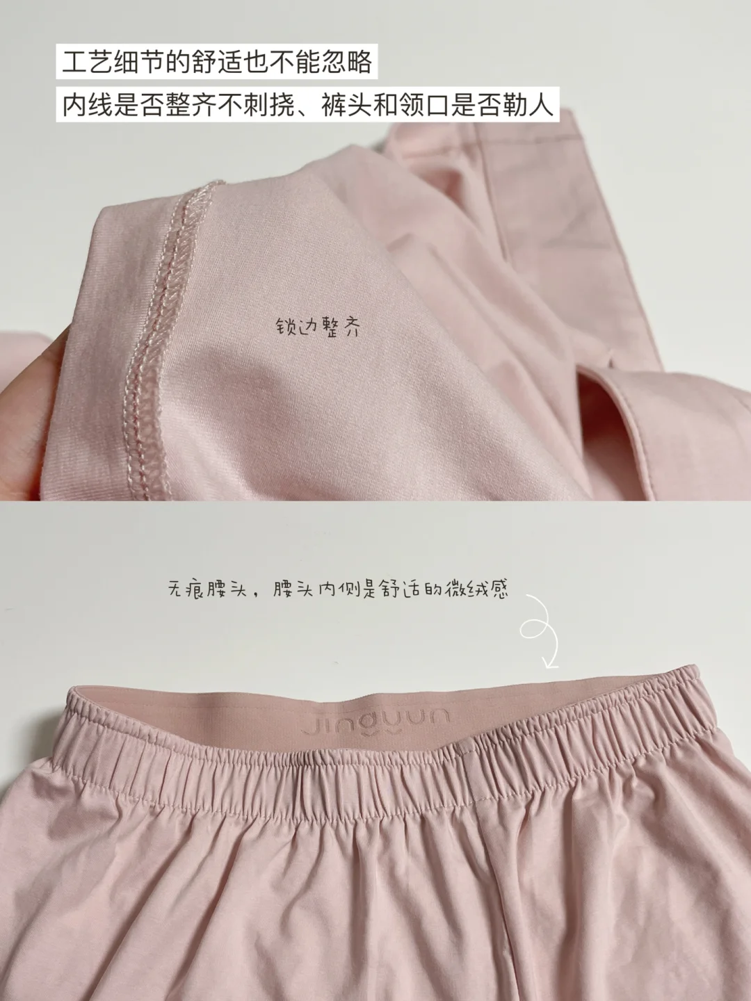 工艺细节的舒适也不能忽略。我会选择印在衣身上的无感标,裤头要无痕,睡觉才不刺挠