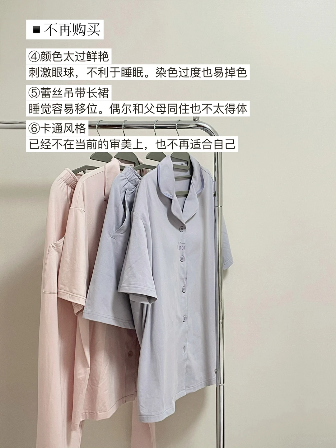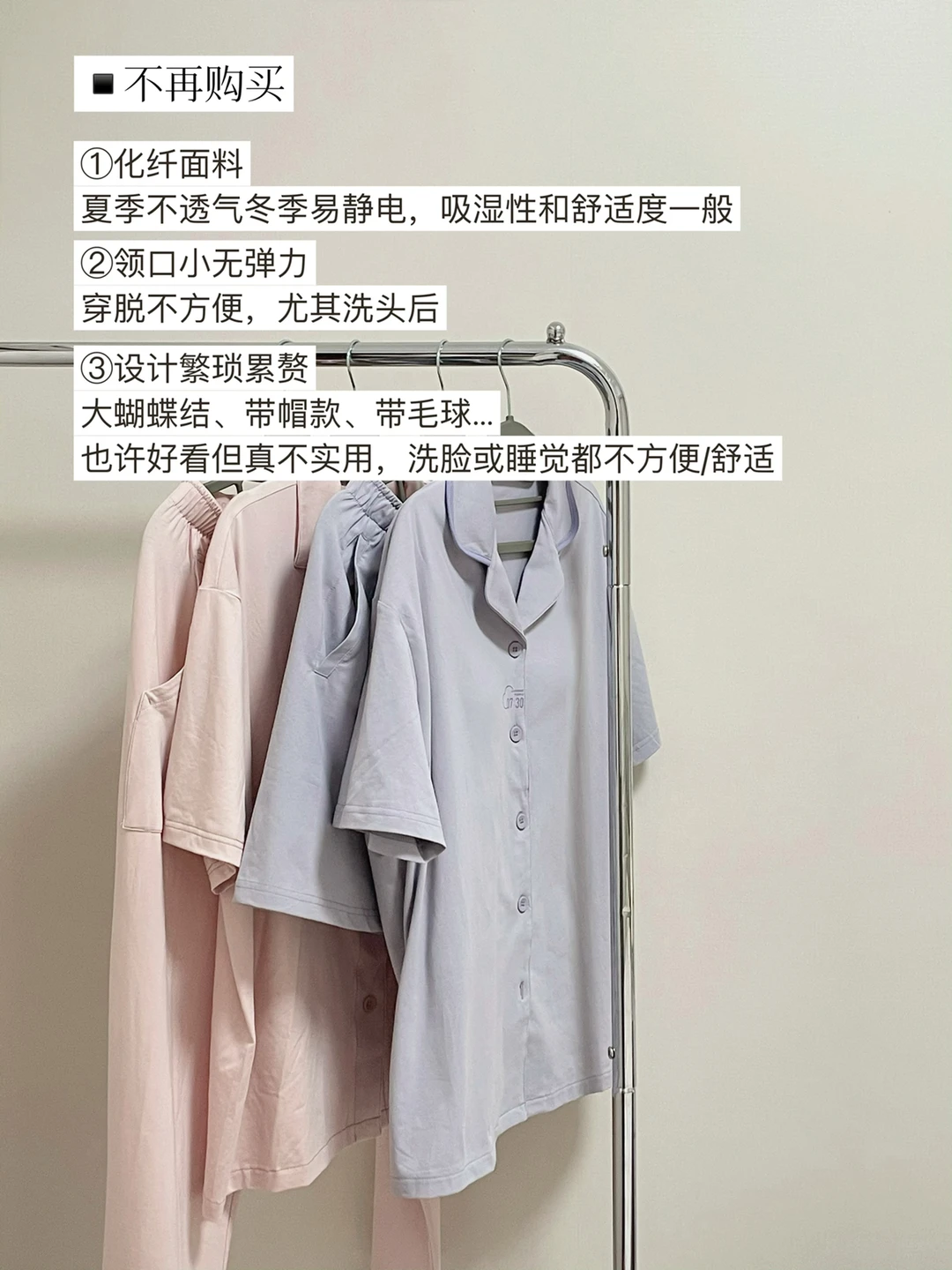 精简衣橱后,发现数量不那么重要,舒适自在>好看。夏季两套睡衣就够了,对于每天1/3时间都穿着的睡衣,我也有适合自己的挑选原则。
