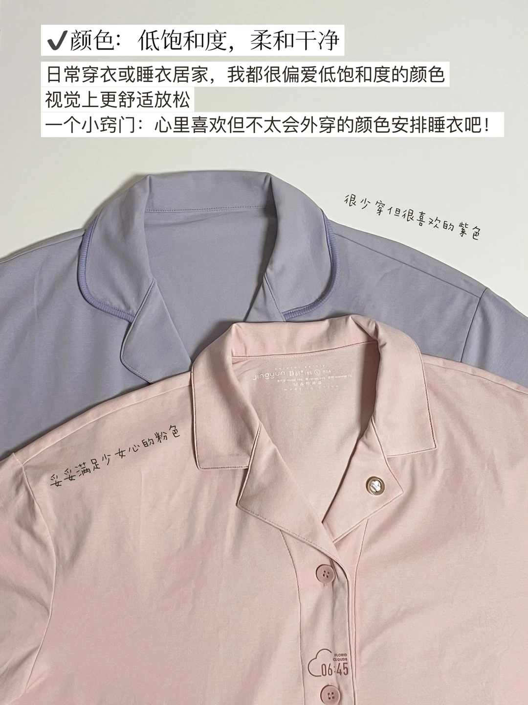 日常穿衣或睡衣居家,我都很偏爱低饱和度的颜色,视觉上更舒适放松。分享一个小窍门:心里喜欢但不太会外穿的颜色完全可以睡衣安排!比如粉色、紫色,满足少女心嘻嘻~
