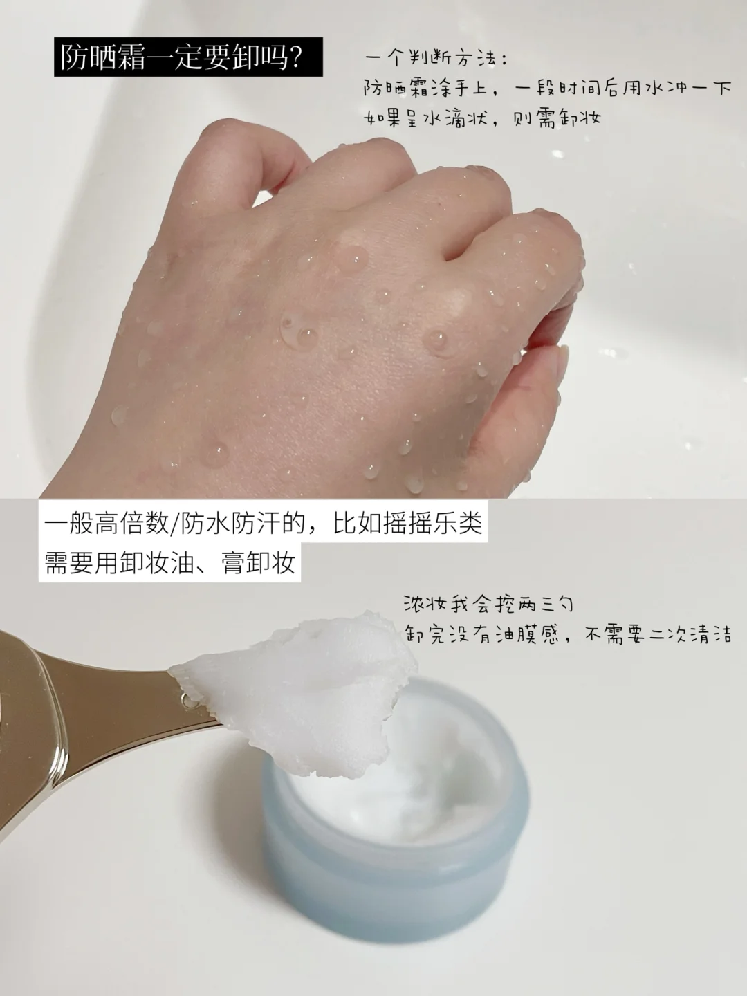 高倍数防水防汗的,比如摇摇乐类防晒,需要卸妆,用卸妆油、膏类即可