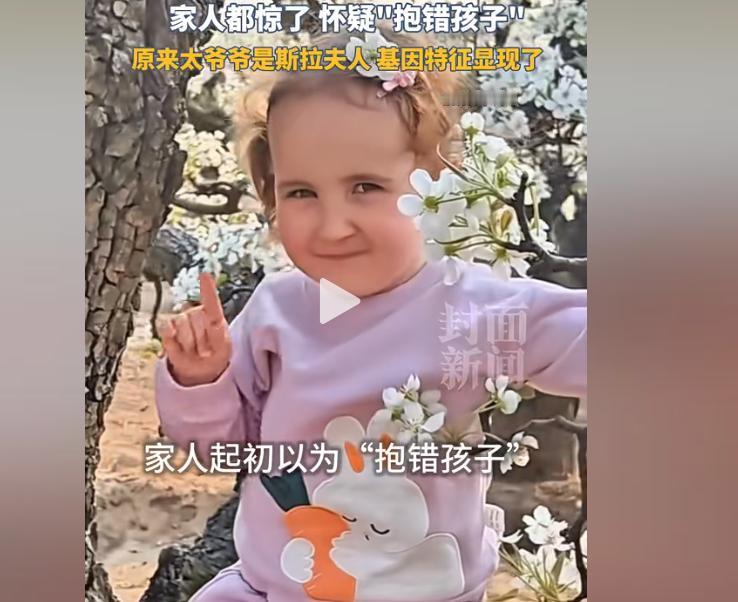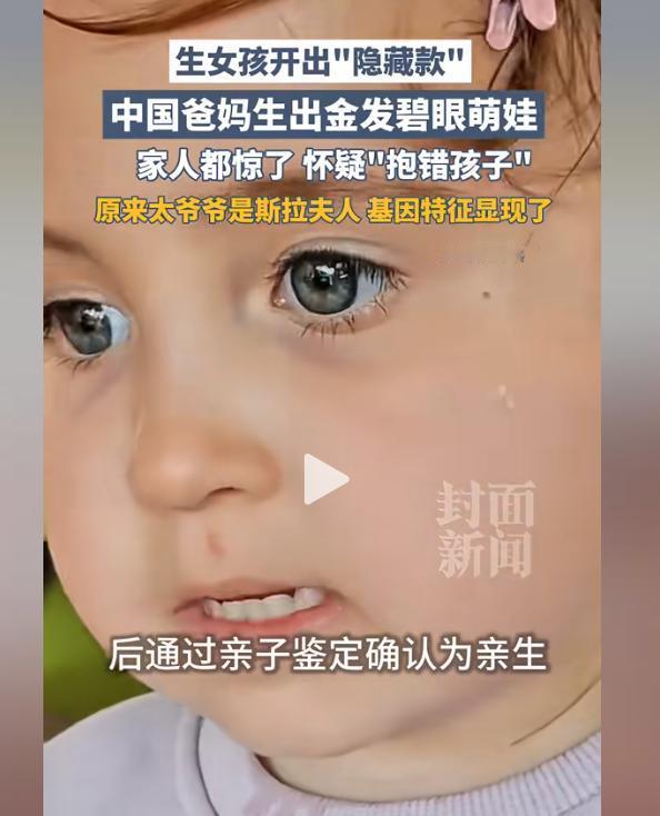 亲子鉴定结果出来了!12月4日报道,江苏一对中国夫妻,竟然生下金发碧眼的女儿,家人起初以为是“抱错孩子”,只是眼睛比较大,谁知越长大眼睛越蓝,网友纷纷劝说鉴定,也让母亲慌了,幸好,通过亲子鉴定确认是亲生的。那这金发碧眼是怎么回事? “这怎么越看越像是个外国人?”江苏盐城一个普通的家庭里,这样的嘀咕声已经持续了好一阵子。这对典型的中国夫妻,生下了一个让所有亲戚邻居都忍不住多看两眼的女儿。 小姑娘最初只是眼睛格外大,但日子一天天过去,那瞳孔竟透出海水般的湛蓝,头发也从胎毛的深色,渐渐褪成了阳光似的浅金,和周围的人格格不入。 “不去做个鉴定吗?这怕是抱错了吧。”家里人心里直打鼓,七大姑八大姨私底下议论,连网友看了照片都忍不住留言。这些质疑,让原本的喜悦被一层不安笼罩,夫妻俩不得不去做了亲子鉴定。 结果出来,DNA匹配度99.99%,白纸黑字确认是亲生女儿。疑虑的石头落了地,但更大的好奇浮了上来:这到底是怎么回事? 究其根源,要追溯到将近一百年前。原来女孩父亲的太爷爷,也就是曾祖父,是一位来自俄罗斯的斯拉夫人。后来,这个家族在中国落地生根,一代代传下来,娶的都是中国媳妇,生的也都是黑头发黑眼睛的孩子,那段异国往事仿佛被时间彻底掩埋,成了无人提起的老故事。 神奇的是,这个家族一直以来生的都是男孩,金发碧眼的基因,作为隐性的密码,在家族男性的血脉里悄然传递,却始终没有遇到另一个能将它唤醒的“钥匙”,就这样沉默地潜伏了三代人。 直到这个女婴的出生,她的父母在概率的奇妙安排下,各自携带了那份沉睡的基因,并同时传递给了她。两把隐形的钥匙终于配对成功,打开了封存近一个世纪的礼物。 “闹了半天,原来是返祖啊!”孩子的父亲知道原委后,心里豁然开朗,感觉如释重负,忍不住开起了玩笑。 这场跨越世纪的“基因寻亲”故事,让遗传学上的“隔代遗传”和“隐性基因表达”这两个专业术语,一下子变得生动可感。 有遗传学医生打了个比方,说这概率“跟中彩票差不多”。因为要连续几代都恰好生男孩,且婚配对象都不携带显性基因来“压制”,最后还要在某一代恰好让两个隐性基因相遇,这环环相扣的条件,确实充满了巧合。 其实,因为我们每个人的身体里,都可能携带着来自遥远祖先的、未曾显露的遗传密码,这大概就是血脉传承最动人的地方,它提醒着我们:你从来都不是孤立的个体,而是整个家族史的当代结晶。 信源:封面新闻《生女孩开出“隐藏款”》 文|晓晖 编辑|南风意史