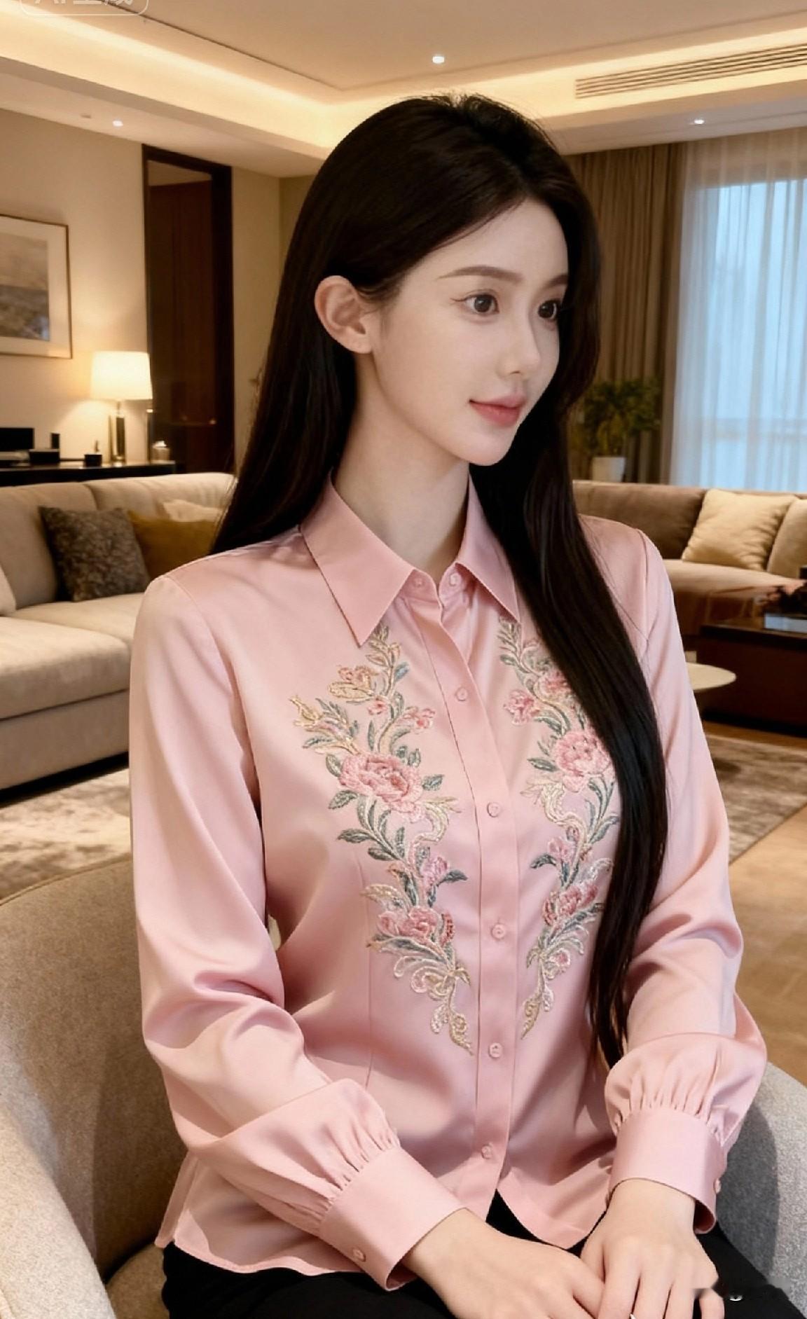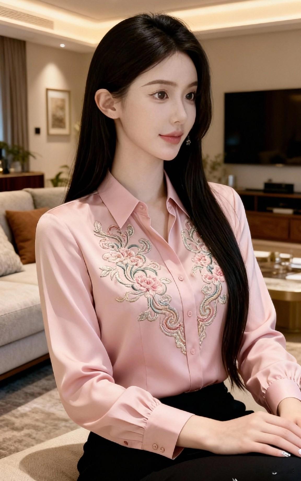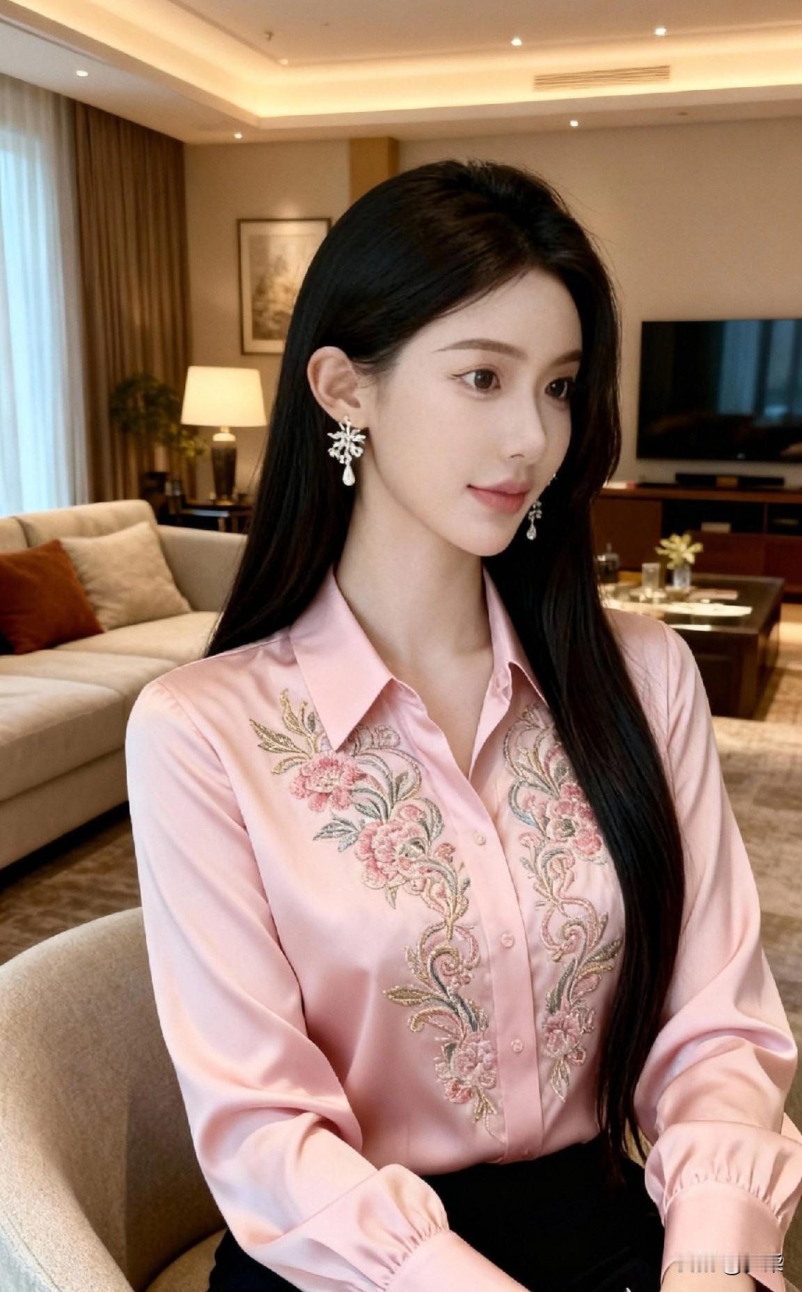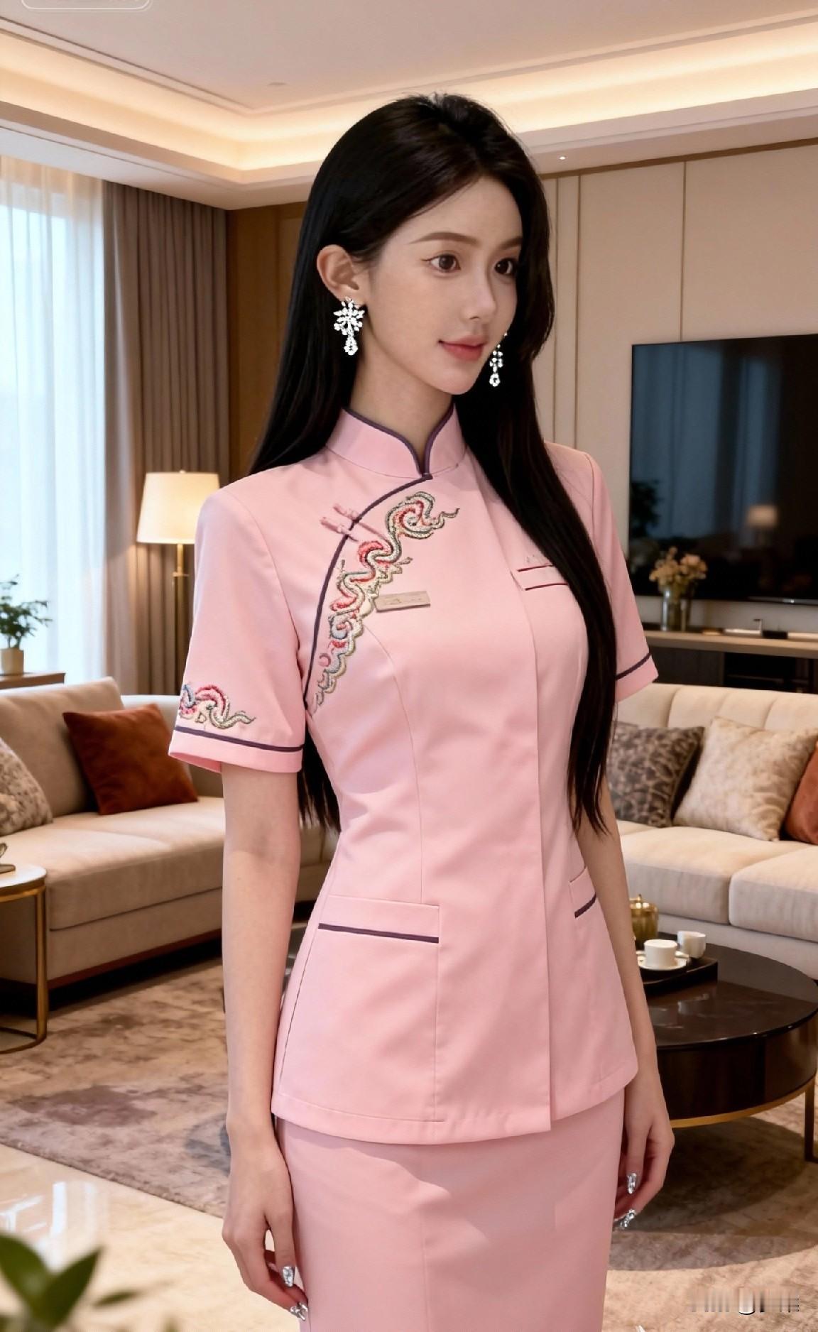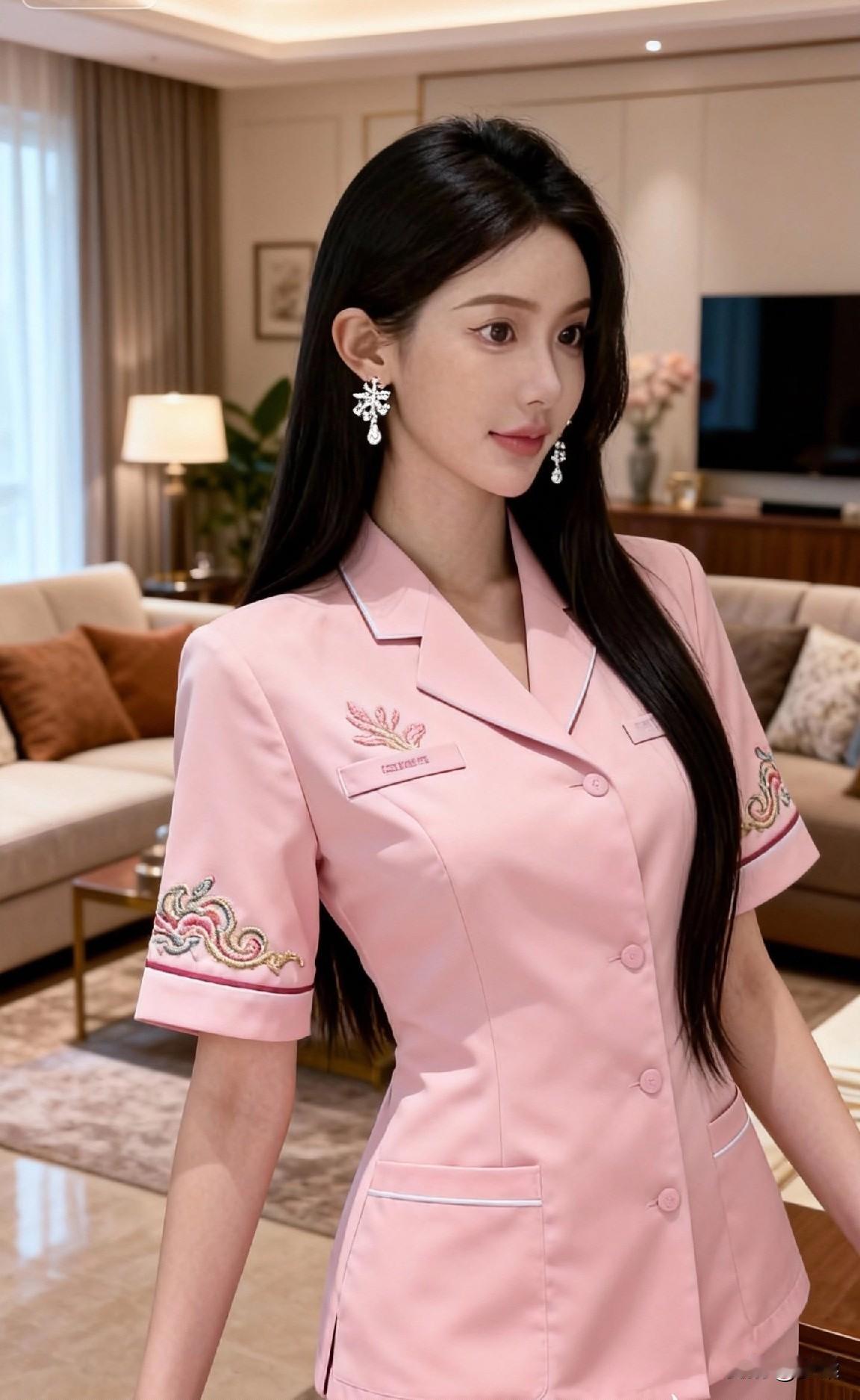 这位小姐姐穿着粉色制服,好温柔。温柔粉色衬衫