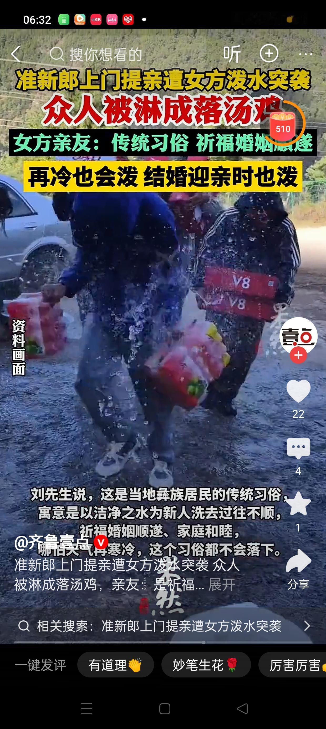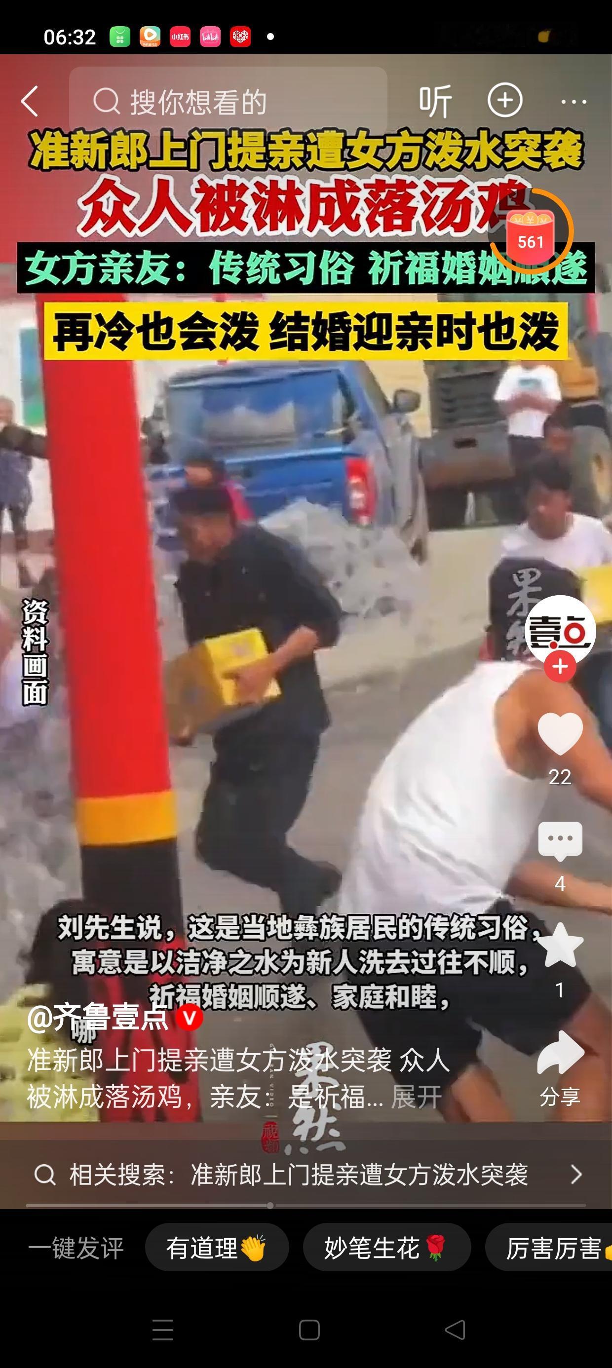 准新郎上门提亲遭女方泼水突袭,竟成祈福婚姻顺遂的传统仪式? 在许多传统文化中,婚姻不仅仅是两个人的结合,更是两个家庭的联姻。随着时代的发展,关于婚礼和提亲的习俗也在不断演变。有一种说法逐渐流传开来:**“准新郎上门提亲遭女方泼水突袭,是祈福婚姻顺遂的传统习俗。”**这听起来似乎令人既惊讶又好奇,难道泼水真的代表着祝福和吉祥?背后又隐藏着怎样的文化寓意呢? 实际上,这一“传统”在某些地区或家庭中确实存在,但它的意义远比表面复杂。泼水在许多民族文化中都具有驱邪避邪、洗净晦气的象征作用。例如,傣族的泼水节、藏族的浴佛节,都是用水来祈求好运和幸福。而在某些地方,泼水也被视为一种“洗去不幸,迎接未来”的仪式。 那么,为什么会出现“提亲被泼水”的场景?其实,这多半源于地方性的习俗或特殊的文化表达。有些家庭会用泼水的方式,象征“洗去不好的运气”,让新人的婚姻生活更加顺利吉祥。而在提亲的场合中,女方“突如其来”的泼水,也可能是表达对未来生活的祝福和期望——用一种特别的方式,祈愿新人婚姻幸福美满。 当然,也有人认为,这种习俗背后隐藏着深厚的文化寓意和对未来的美好祝愿。它不仅仅是一场“突袭”,更是一场象征性的仪式,代表着双方家庭对新人的祝福和期待。在这个过程中,双方的情感也在互动中得到升华,增添了婚礼的趣味和纪念意义。 总之,虽然“泼水突袭”看似激烈,但它背后所承载的,是对婚姻美好未来的祝福与祈愿。作为现代人,我们应尊重和理解这些传统习俗的深意,让文化的火种在传承中不断焕发新光彩。未来的婚姻生活,也正如这泼水般,洗去尘埃,迎接清新与希望。
