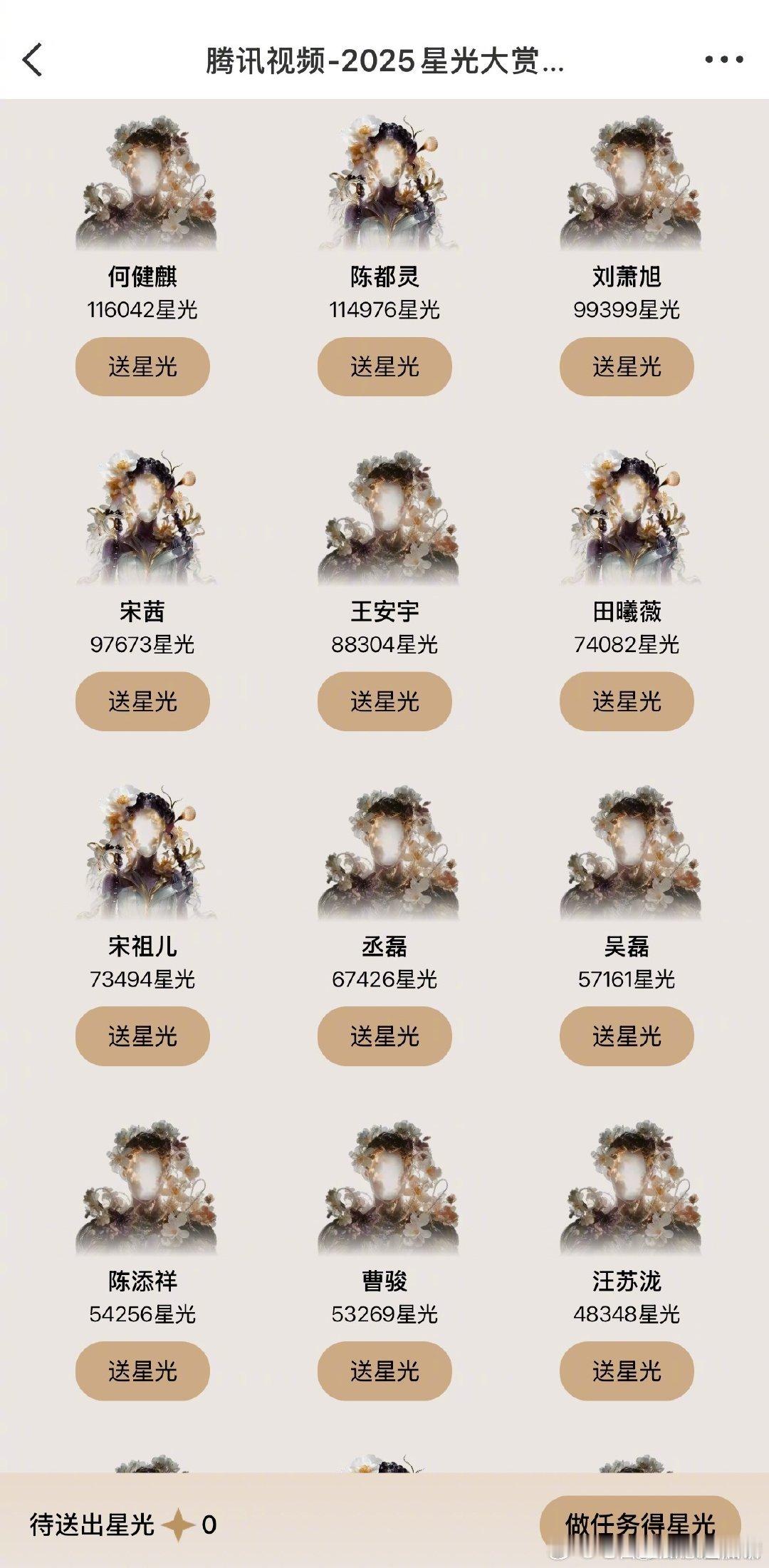 星光大赏的星光墙目前Top10:时代少年团、刘宇宁、丁禹兮、赵露思、鞠婧祎、龚俊