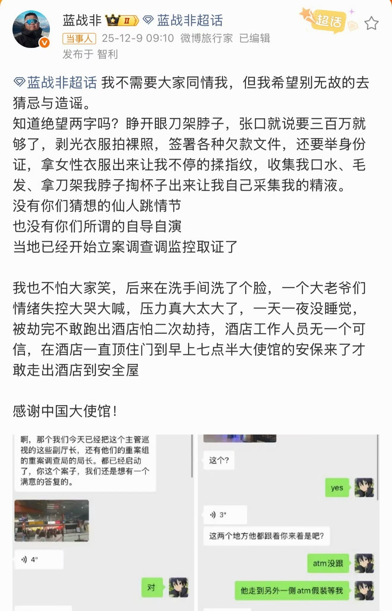蓝战非称被绑架我的互联网脚替在外被团伙绑架我们现在能做的就是持续关注当地官方调查