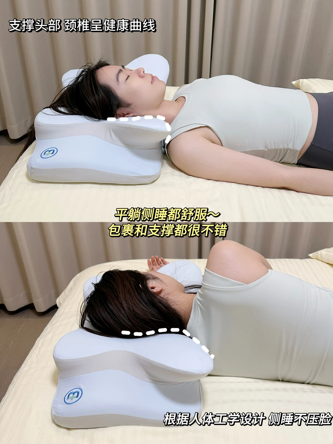 整个枕头是根据人体工学来设计的!科学护脊!尤其是头窝牵引区设计很贴心,稳稳地贴合肩颈还能辅助固定头部!怎么睡都不担心落枕~