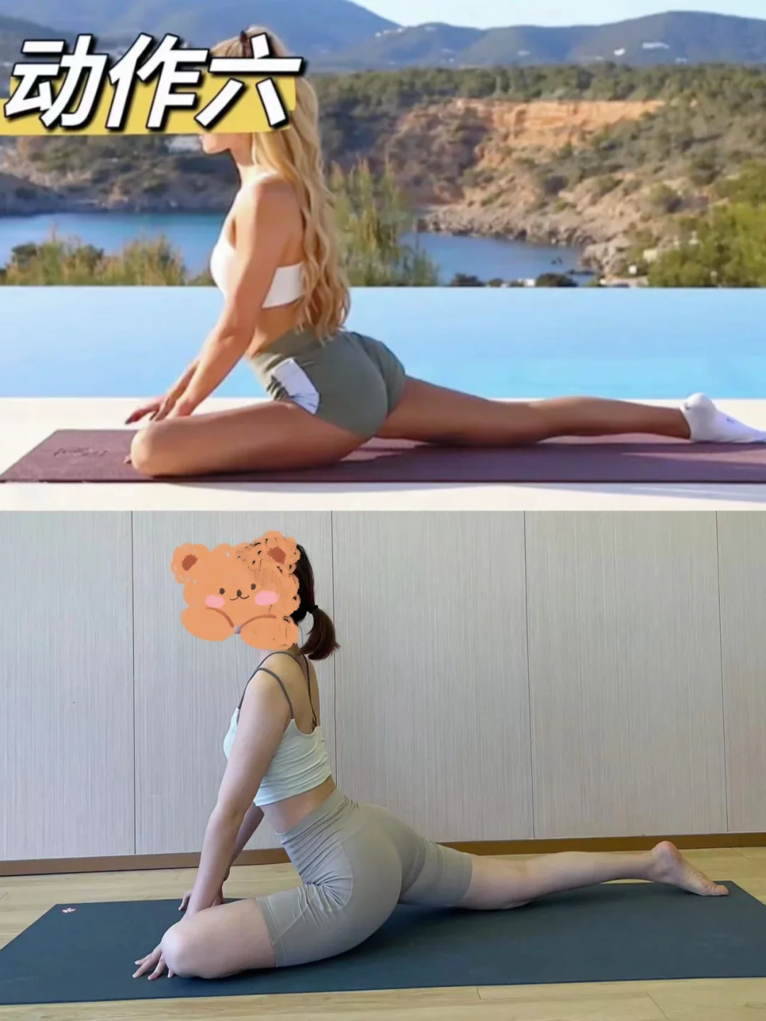 尤其是运动完,肌肉腿,脂包肌必练,还能锻炼身体的柔韧性~ 不定地点在家就能做,快点动起来 动作一:腿部拉伸 动作二:宽腿侧边拉伸 动作三:宽腿前屈 动作四:蝴蝶坐 动作五:臀部拉伸 动作六:鸽式 动作七:仰卧臀部拉伸 每个动作30s,左右腿都要练