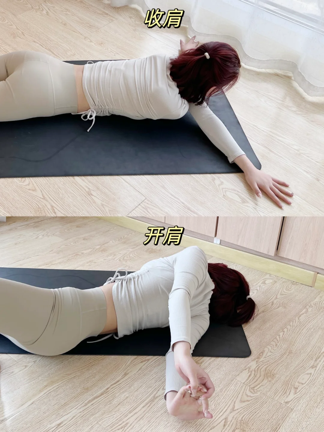 一组缩腰瘦下腹,开肩开胸序列! 每个动作保持30S,睡前在床上也可以安排一组。 如果大家这些动作完成起来很吃力也不需要勉强,能做哪个程度就是哪个程度感这些都是需要慢慢练习,循环渐进!! 练完之后像我一样用筋膜枪按摩放松一下肩颈手臂,坚持就会有效果哟~姐妹们一起练