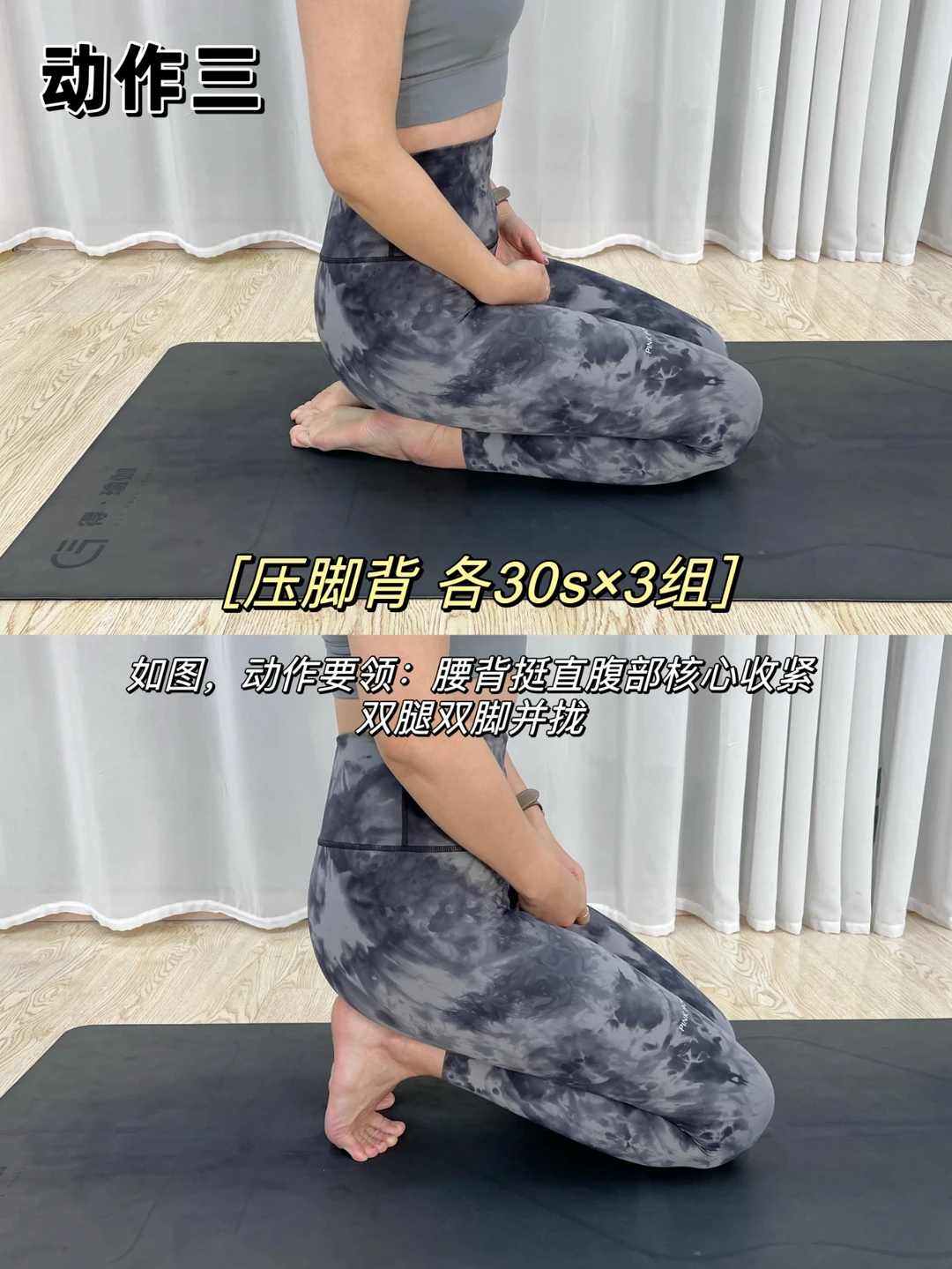 动作方式都在图上,要领就是腰背挺直腹部核心收紧,而且双腿双脚并拢哦