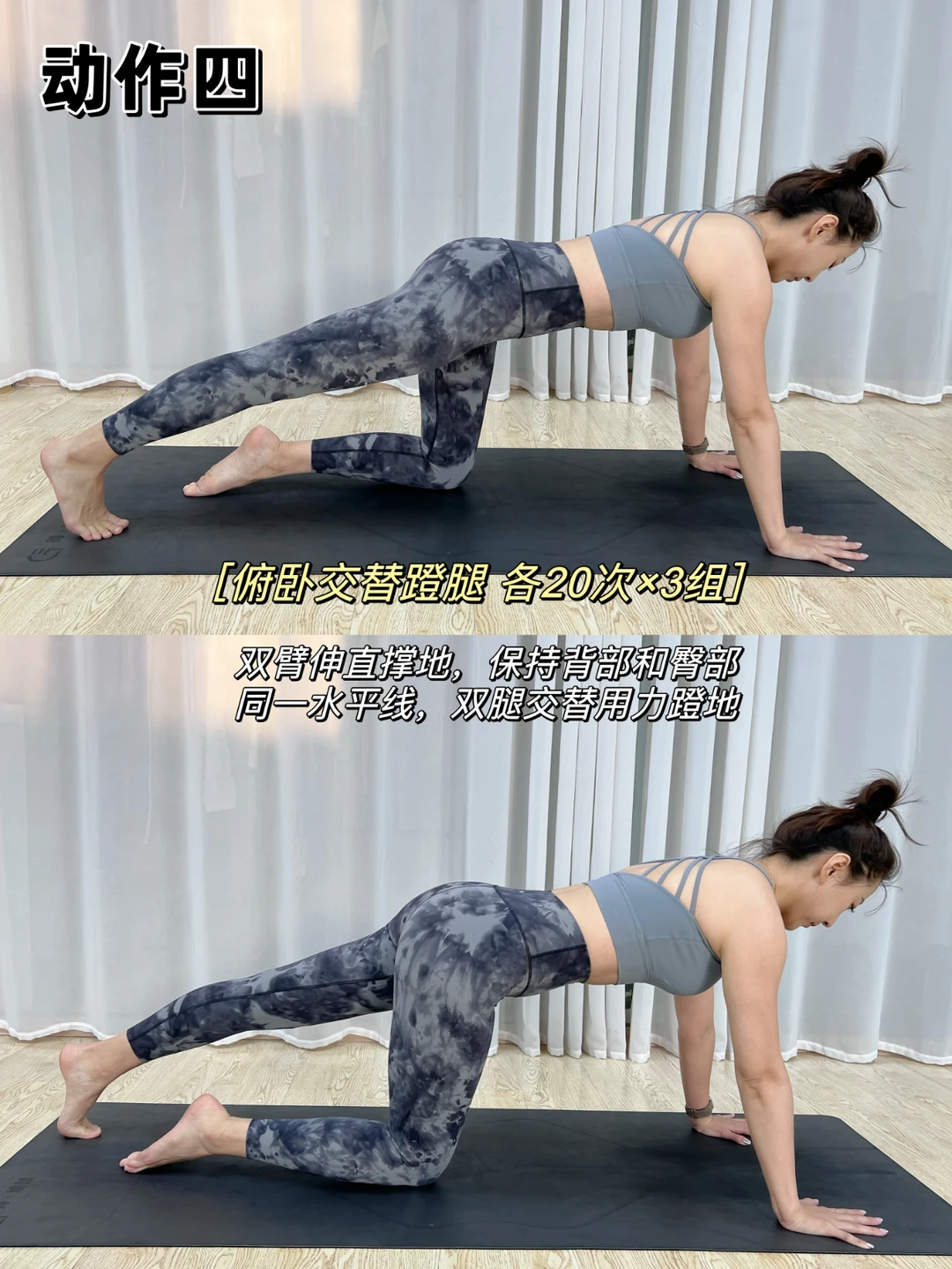 动作四:俯卧交替蹬腿;左右各20次*3组;