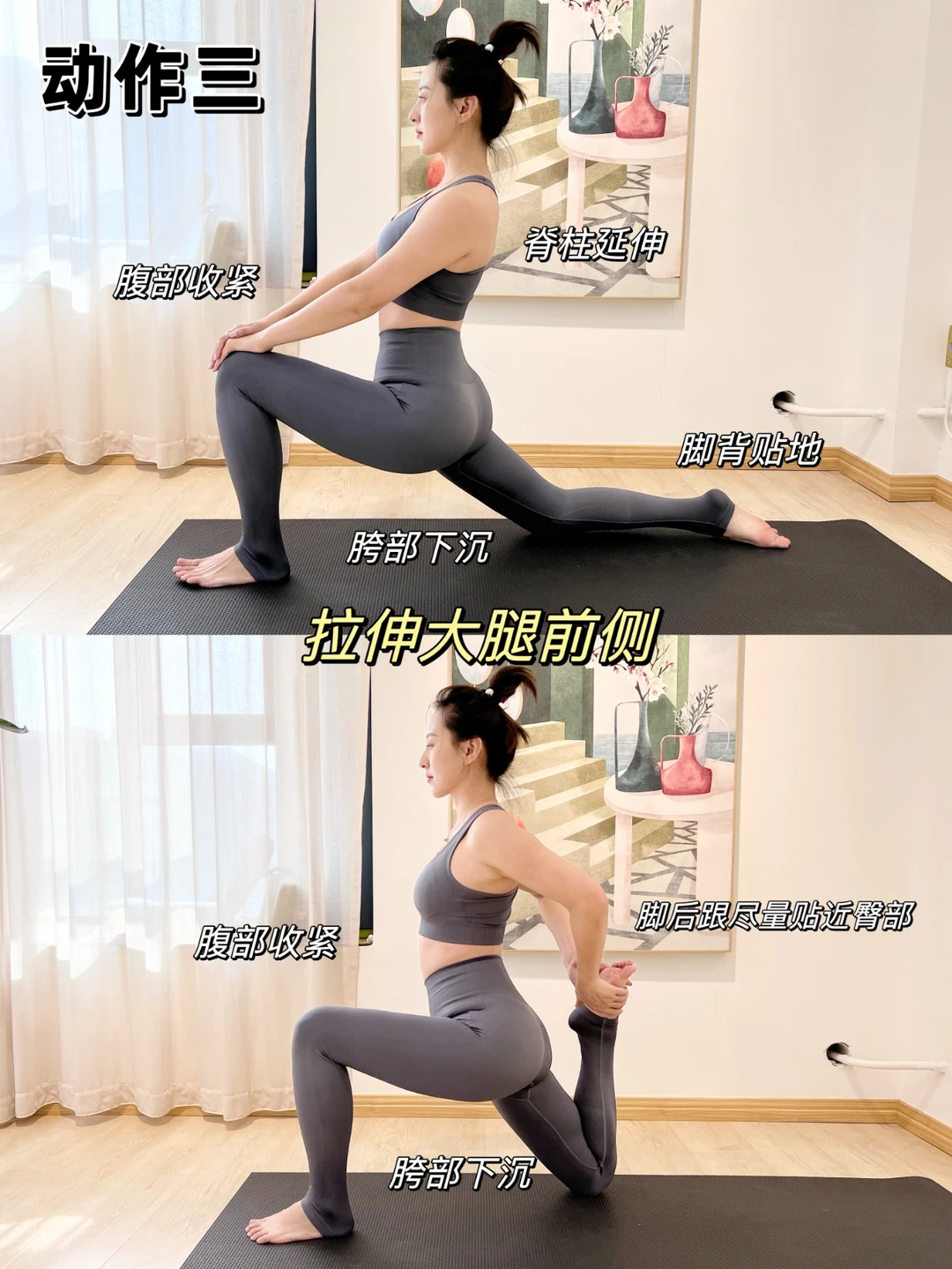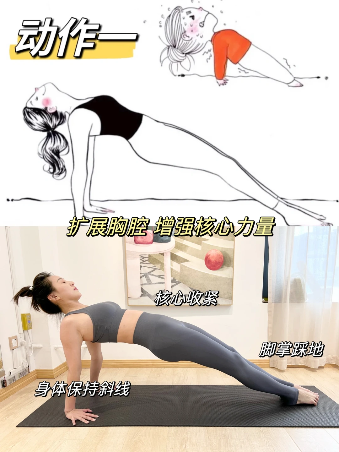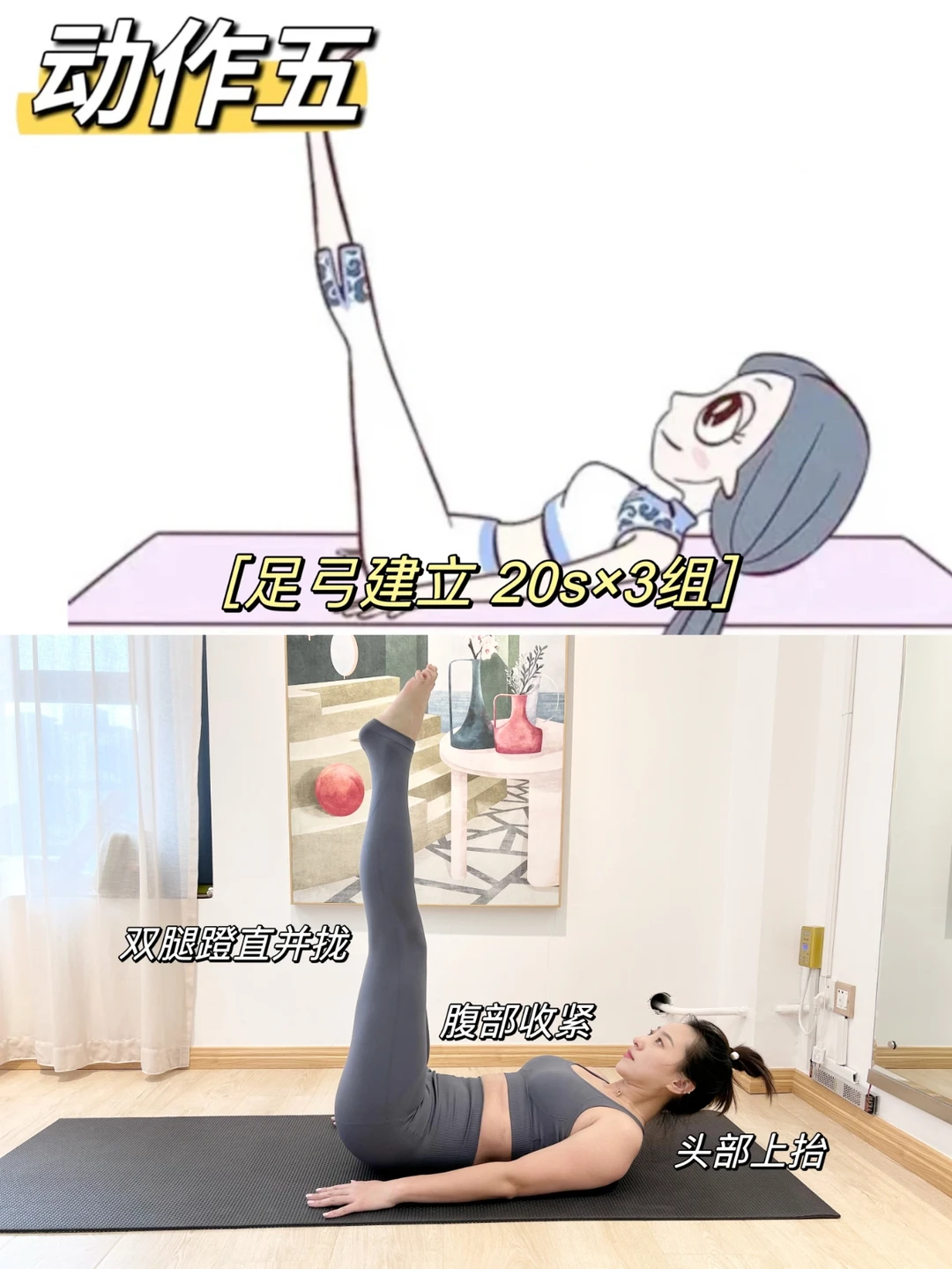改善小腹突出,骨盆前倾,膝超伸! 视觉显瘦十斤! 每个动作坚持40s,两组,记得核心要收紧!