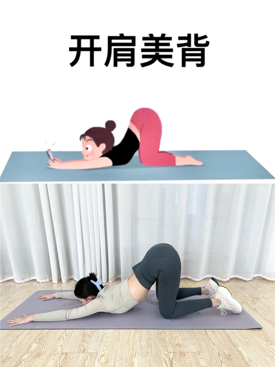 伸展背部,开肩美背,缓解背部压力改善含胸驼背,增强脊柱弹性和髋部灵活,调整女性月经不调痛经