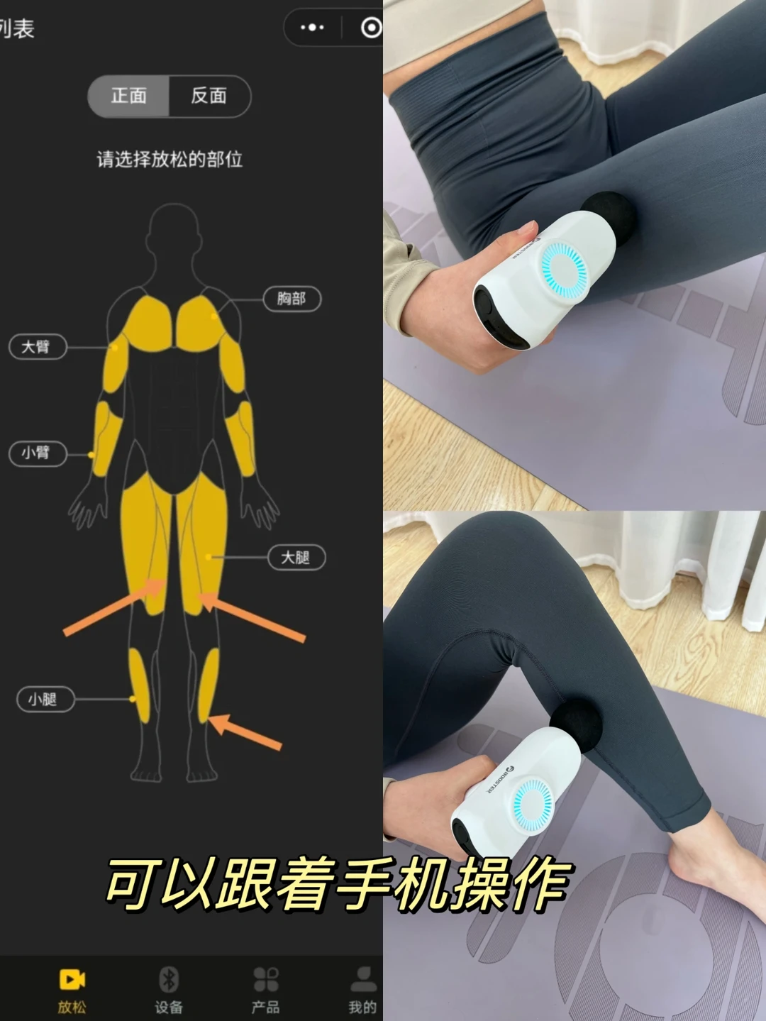 做完一组记得用筋膜枪放松一下腿部肌肉,可以促进血液循环,更好的优化腿部线条。我用的是菠萝君miniv2,小巧轻便,还可以跟着配备的视频教程按摩,真的很方便。