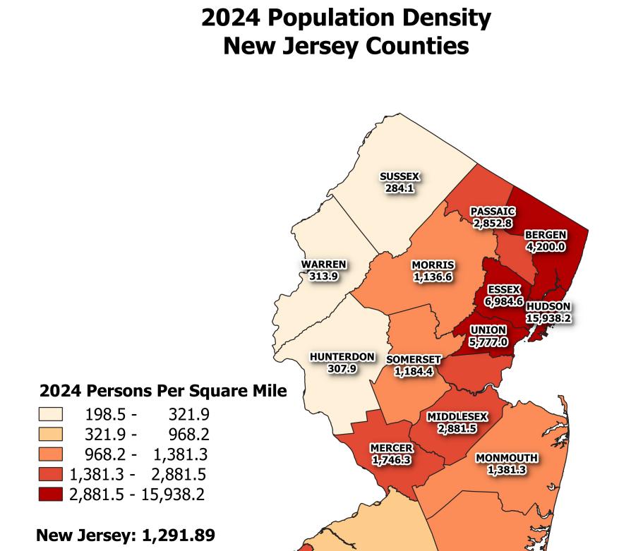 来美国几年了,总觉得新泽西靠近纽约的地方比北京还挤。一查数据,挨着纽约的4个郡人口密度都在每平方公里2000人以上,Hudson郡甚至超过了每平方公里6000人。稍远一点儿的地方——号称美东版新德里的Edison镇,每平方公里也有1300多人(这还是2020年的数据),和北京相当。难怪这些地方路烂、车多、环境差、乱象丛生,有些街区甚至让人不敢逗留。如果没有远高于郊区的收入和工作机会,住这些地方还不如回北上广。 PS:1000人/平方公里=2590人/平方英里