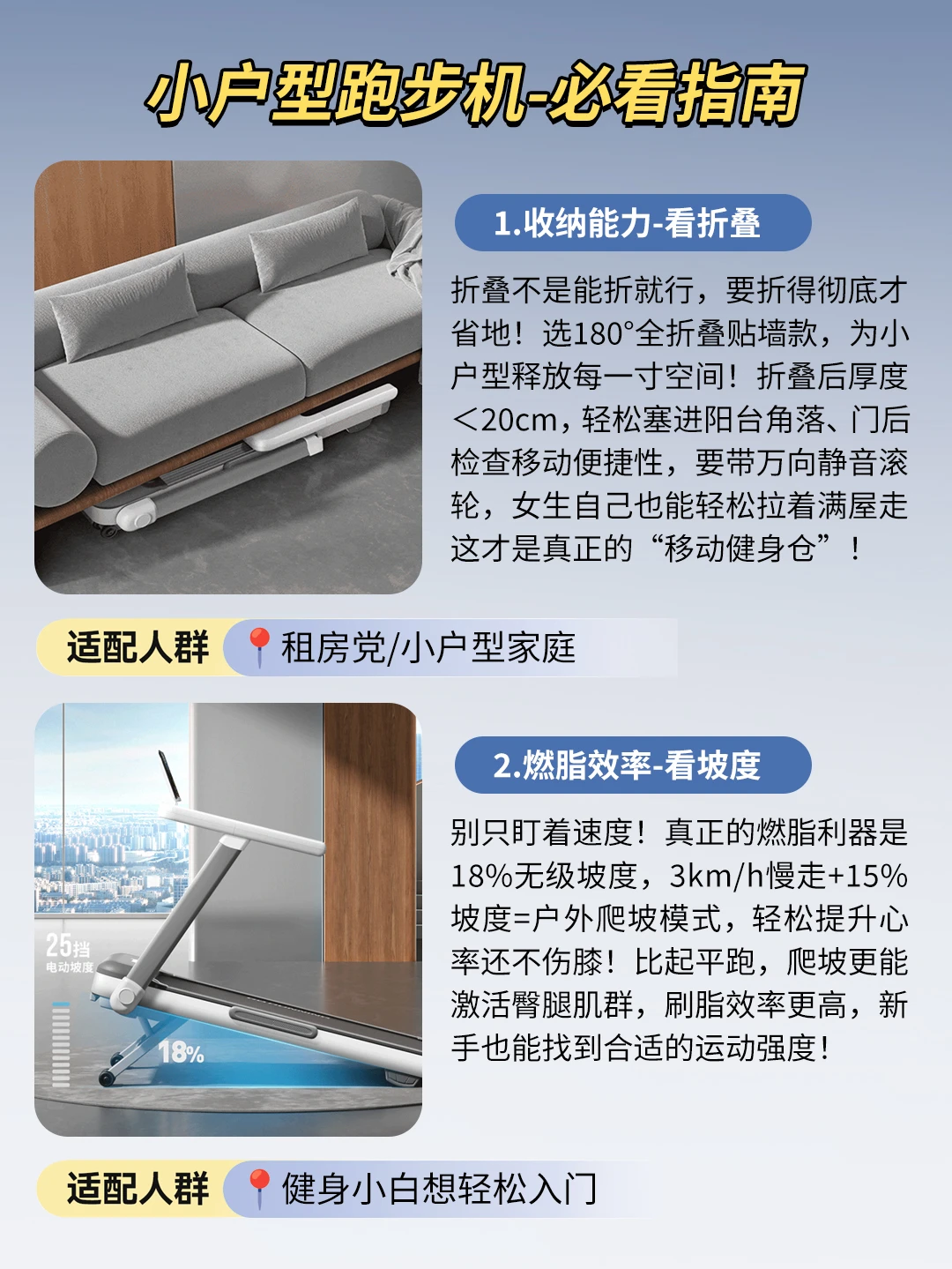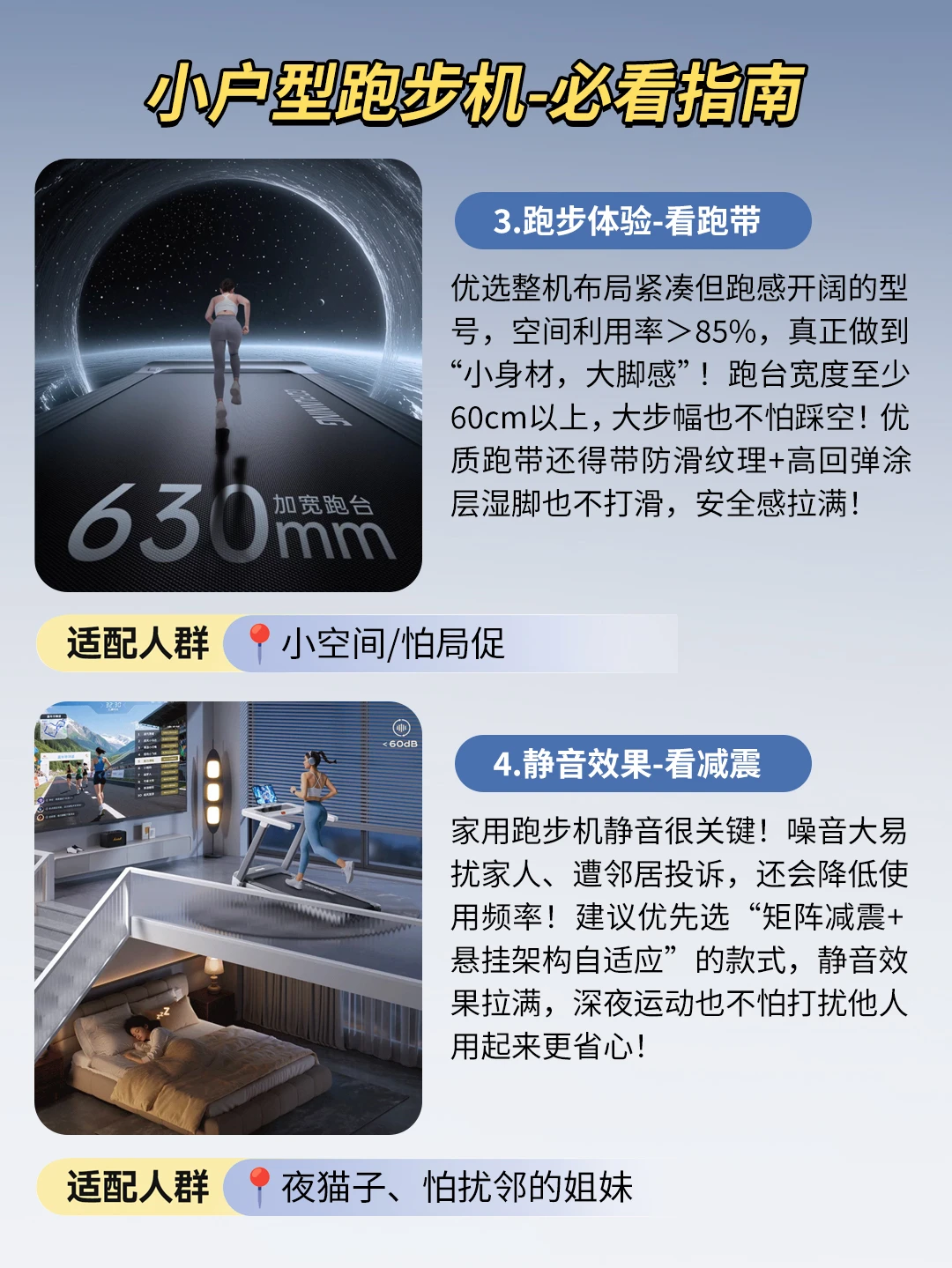 姐妹们!选跑步机别再只看价格和外观了!想长期坚持跑步,跑步机得占地小、护膝、易用还静音~