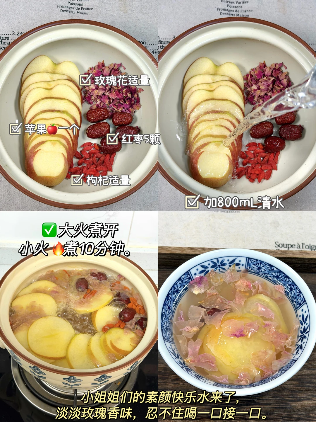 苹果🍎➕玫瑰花➕红枣➕枸杞秋冬养生