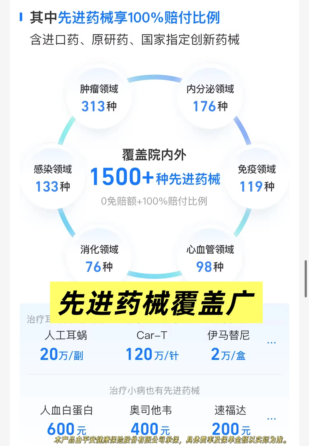 住院用的进口药、原研药等都能赔,其中1500+种先进药械更是100%比例赔付