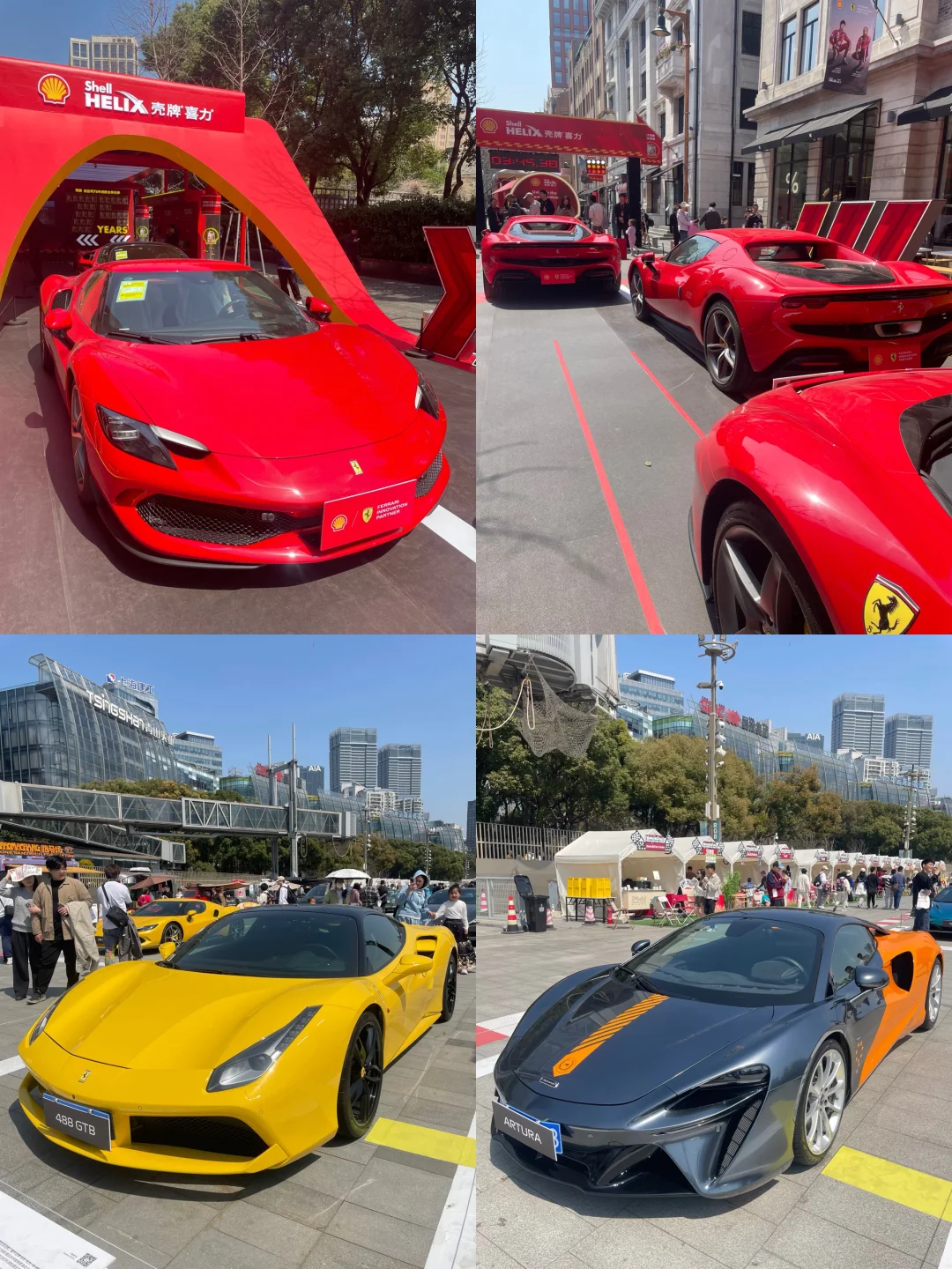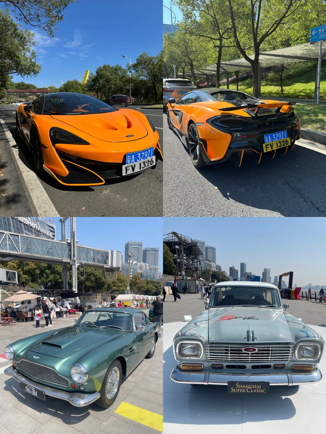 除了F1赛车,还在上海街头偶遇了兰博基尼大牛,黄色车身超吸睛,剪刀门打开的瞬间,回头率百分百。逛上海车展时更是眼花缭乱,法拉利、迈凯伦、宾利、阿斯顿·马丁…每台豪车都想拍个遍,和广州车展相比,上海车展的F1赛车展区更震撼,真的让跑车迷过足了瘾✨