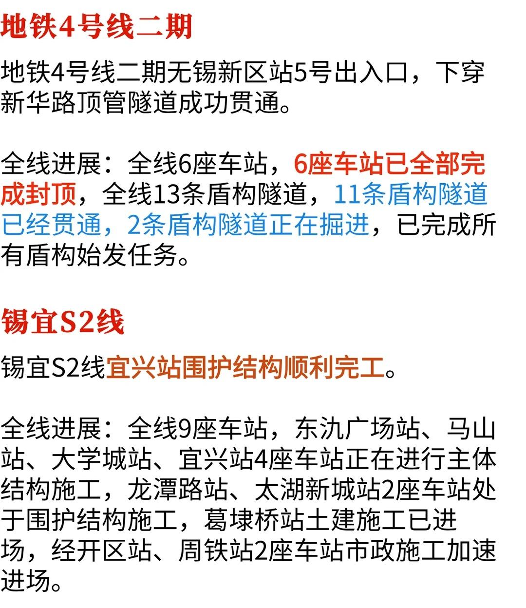 无锡越来越好❗️地铁/学校/医院最新建设进展 一大波城市建设新进展来啦✨ 地铁、大学、中学、医院全面升级 快收下这份城市更新攻略~ 🚇【地铁建设】 ✅ 4号线二期:6座车站全封顶,11条隧道已贯通 ✅ 锡宜S2线:宜兴站围护结构顺利完工。 🏫【高校建设】 南邮无锡校区三标段全部开工 ✏️【中学扩建启动】 第六高级中学新建教学楼、宿舍项目启动 预计2027年3月就能完工 🏥【医疗升级】 ✅ 锡山区中医医院:2027年上半年启用 ✅ 江阴妇幼新院区:12月10日试运行 大无锡越来越好了 期待这些项目早日建成 无锡 城市交通规划 学校就在家门口 学区 无锡地铁 南邮 南邮无锡 无锡高校 无锡六中