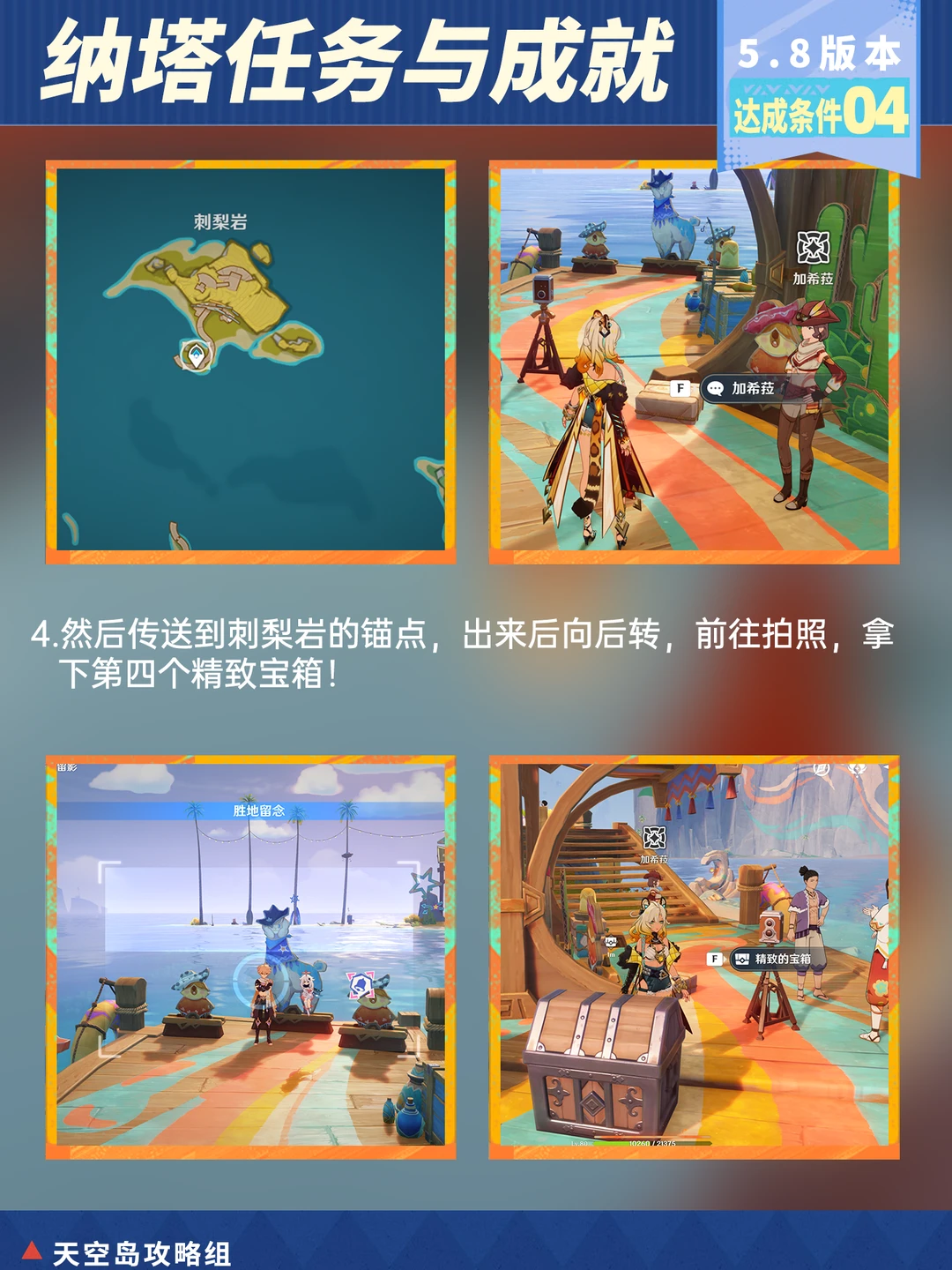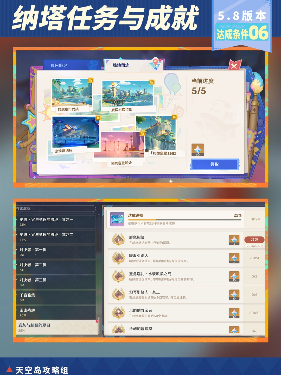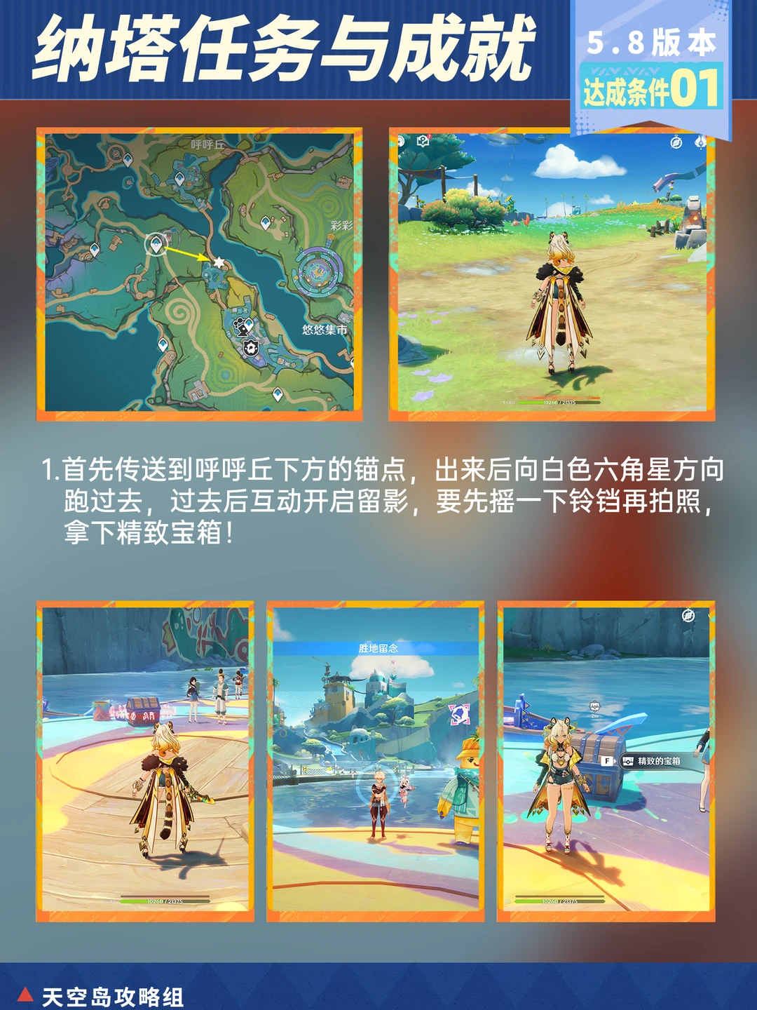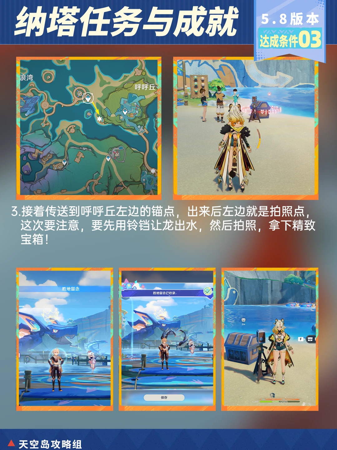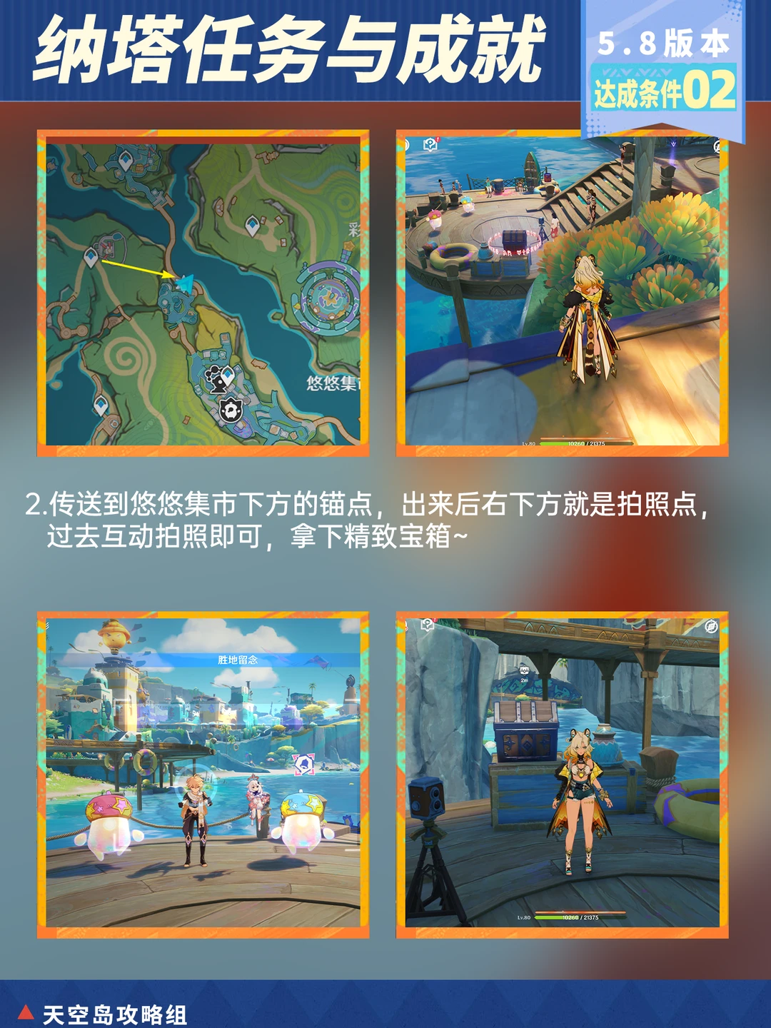 5.8版本夏活隐藏成就「彩色相簿」攻略[哇R] 完成悠悠度假村任务道具悠悠纪念册里胜地留念5处拍照,可获得65原石+5精致宝箱