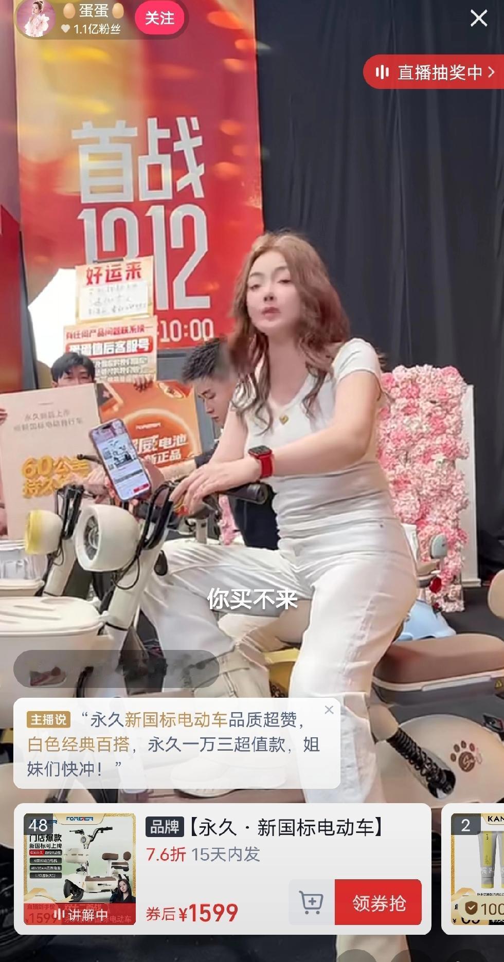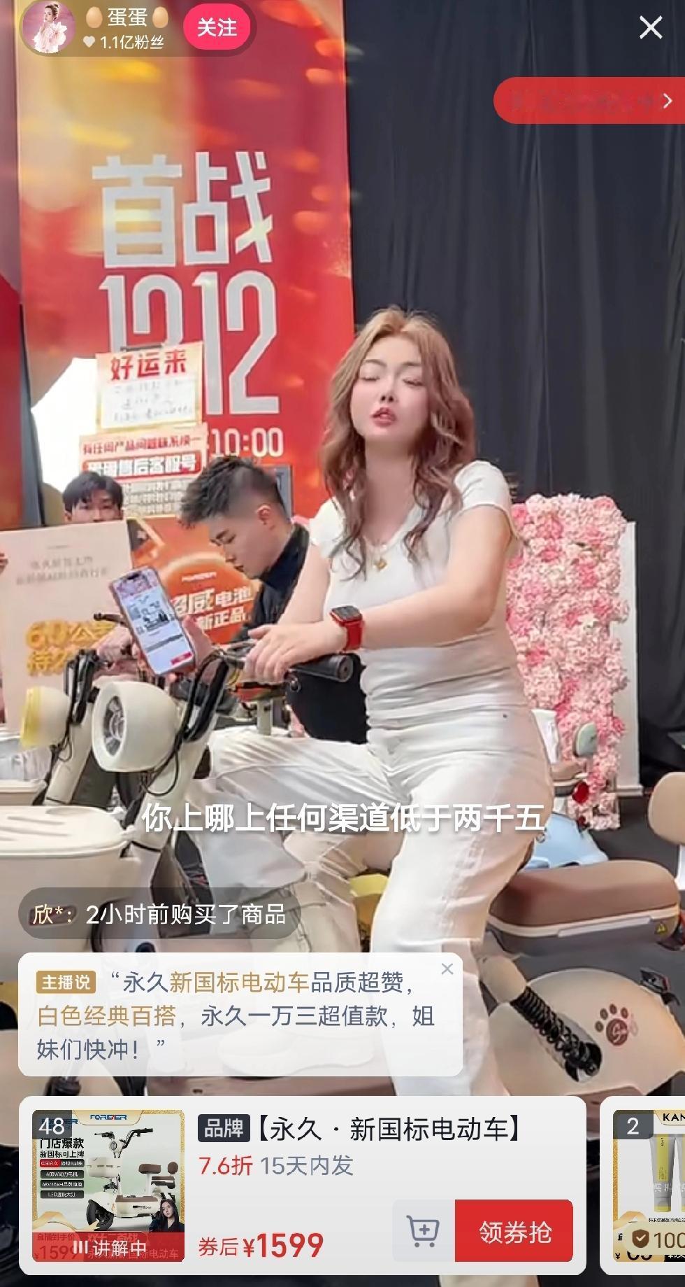 网上不是说新国标电动车2999、3999吗?看看网红直播间带货新国标电动车,才1599。据网红主播蛋蛋讲,你上哪个任何渠道低于2500,你买不来。也就是说便宜了接近1000块。主播不会是赔钱卖的吧,新国标都说增加了多少多少成本,所以喊到三四千块钱。网上居然1599,太便宜了。 问题就是车速25公里每小时及以下。虽然说允许带娃,但是,带娃可能爬坡需要下车推。所以,新国标可能更适合一个人代步。尤其老年人休闲娱乐的那种,慢悠悠的骑着,安全优雅。上班族可能会觉得慢。 话说回来,这个价格,而且还是永久牌子的,还是可以的。应该说新国标适合一部分人,或者一少部分,总是比滑板车要快一些的。