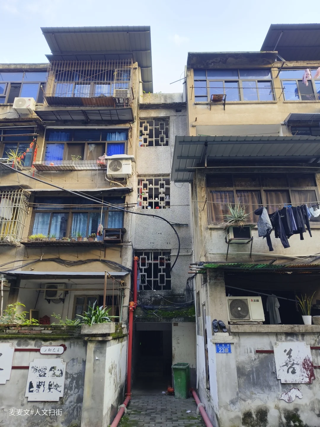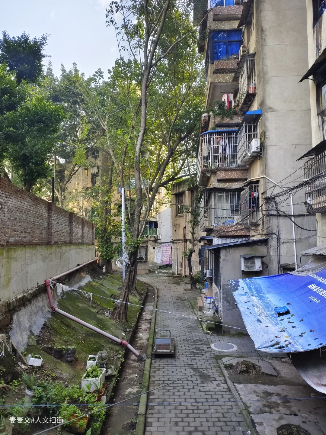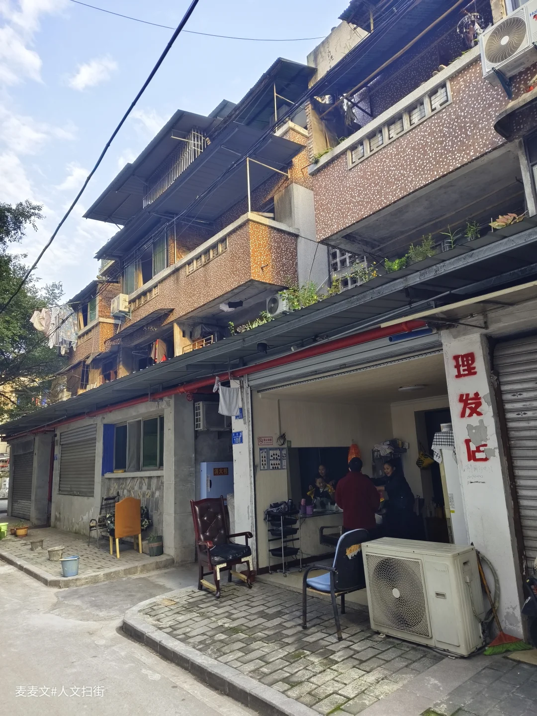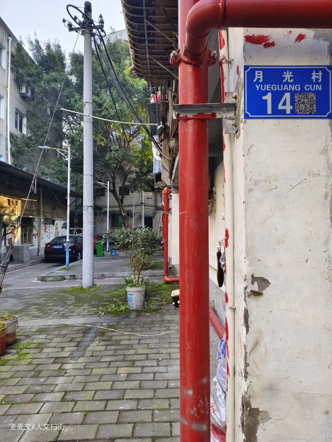 月光村,位于重庆市北碚区天生街道奔月路社区。这个老社区里,八九十年代的居民楼爬满岁月痕迹,老阳台挂着晾晒的衣裤,窗沿摆着几盆绿植,电线像蛛网般缠在楼体之间。 一块褪色的铭牌“建设单位:重庆烟草公司北碚分公司”泄露了它的身世,证实这是烟草人的老家属楼。 如今楼里仍住满了人,门口的水泥水池、墙面上新刷的中式壁画,混着老居民的生活气息。在北碚老城的更新里,月光村没随波逐流,反而把八九十年代的烟火气,焐得温热又鲜活。