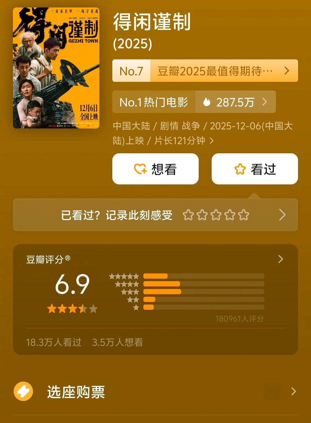《得闲谨制》豆瓣评分6.9,还是很公允的。要是剧情不那么拖沓,多点张力,前面多设计一个爆点,评分至少都是7.5以上,可惜了。