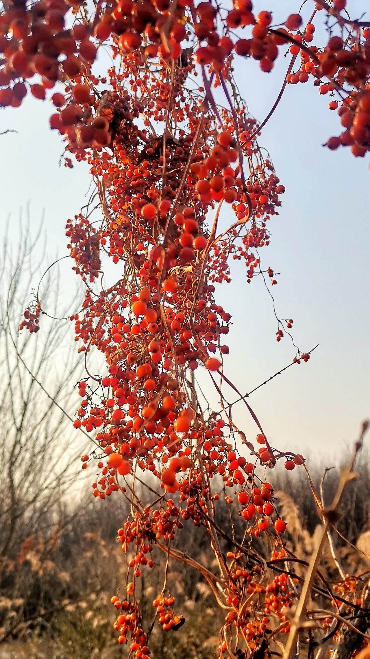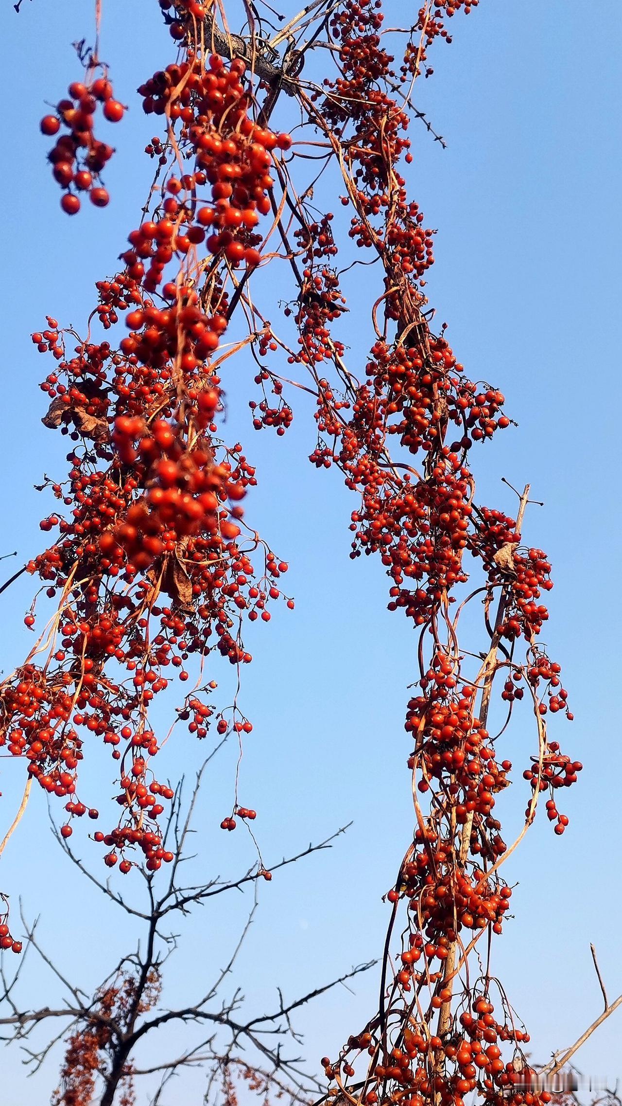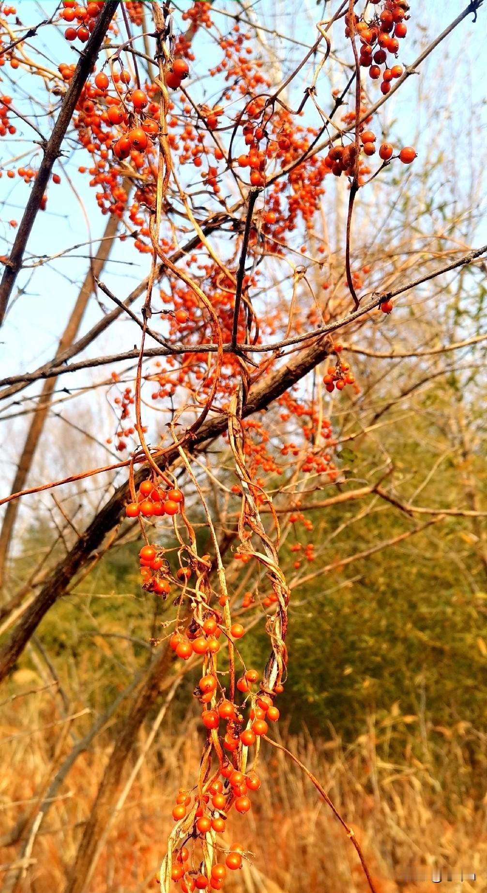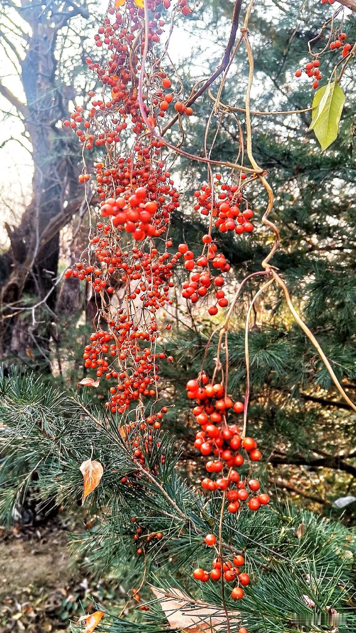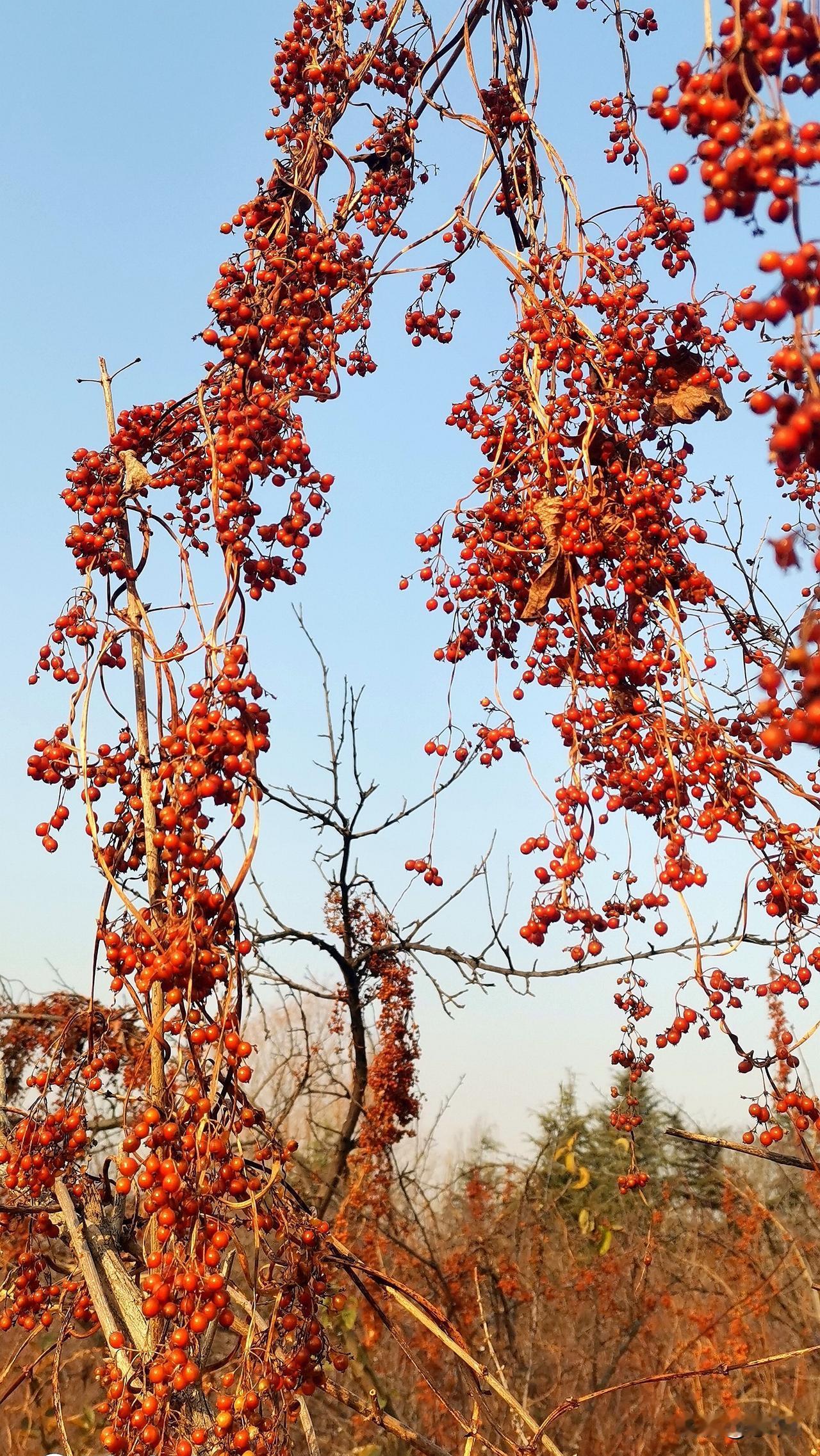 野地里有那么一种攀缘植物,这个时候,枝蔓上挂满了红色的小果。再过些日子,或者等一