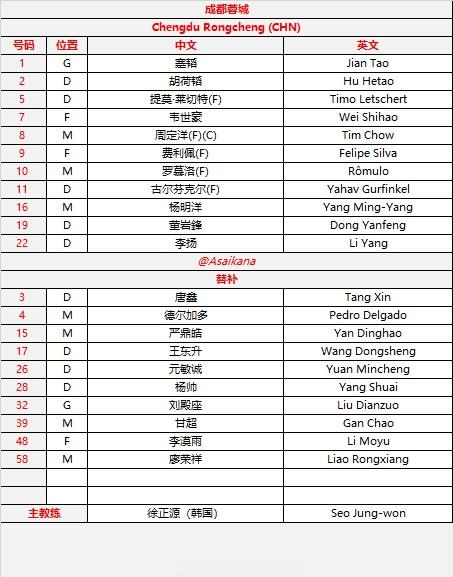 直播吧12月09日讯北京时间12月9日18:00,亚冠精英联赛东亚区第6轮,成都蓉城客场对阵神户胜利船。赛前双方公布首发。