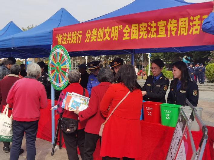 近日,“依法共践行分类创文明”全国宪法宣传周活动举行。现场通过多种形式宣传垃圾分类知识,吸引众多市民积极参与,让绿色环保理念更加深入人心。