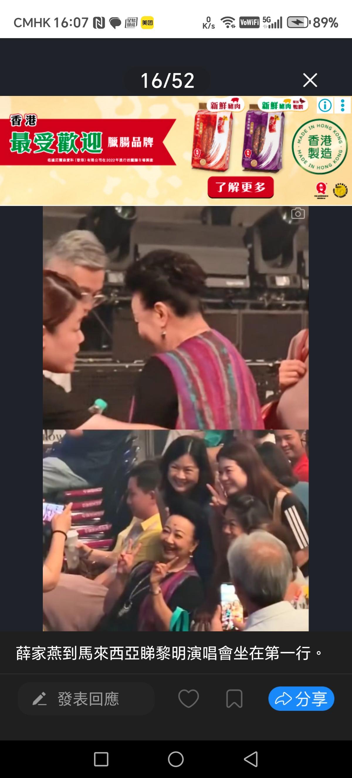 黎明最近到外地举行巡回演唱会,而香港将于2026年3月22至29日在红磡香港体育馆举行《黎明 红馆演唱会 2026》,让粉丝非常期待。日前黎明到马来西亚演出《2025黎明巡回演唱会》时,席上竟见到娱圈富婆捧场,引起网民讨论。 黎明获80岁粉丝支持 黎明于12月6日到马来西亚开骚,吸引大批粉丝支持,座无虚席。现场见到有手持「80岁阿婆、我爱黎明」手牌的婆婆外,薛家燕亦惊喜现身,更坐在第一行,全程笑容满面,不少观众走近与薛家燕打招呼外,薛家燕还亲切地与在场人士合照,成为演唱会另一焦点。