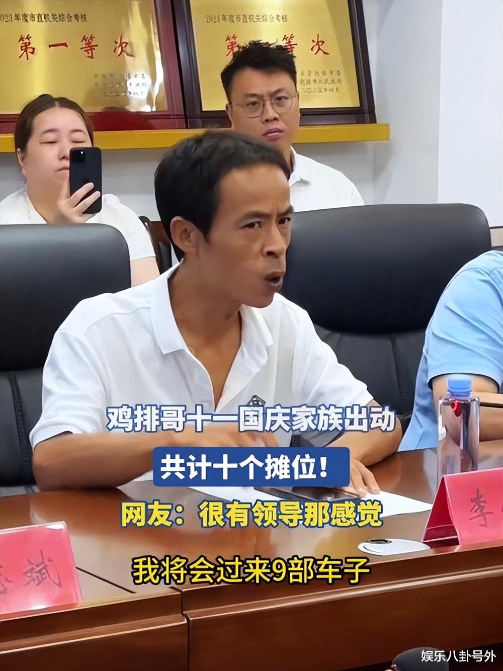 连赵露思直播都在谈到鸡排哥,在国庆期间,鸡排哥家族出动,十几辆车,日均工作超 15 小时的 “铁人模式” 刷屏网络。