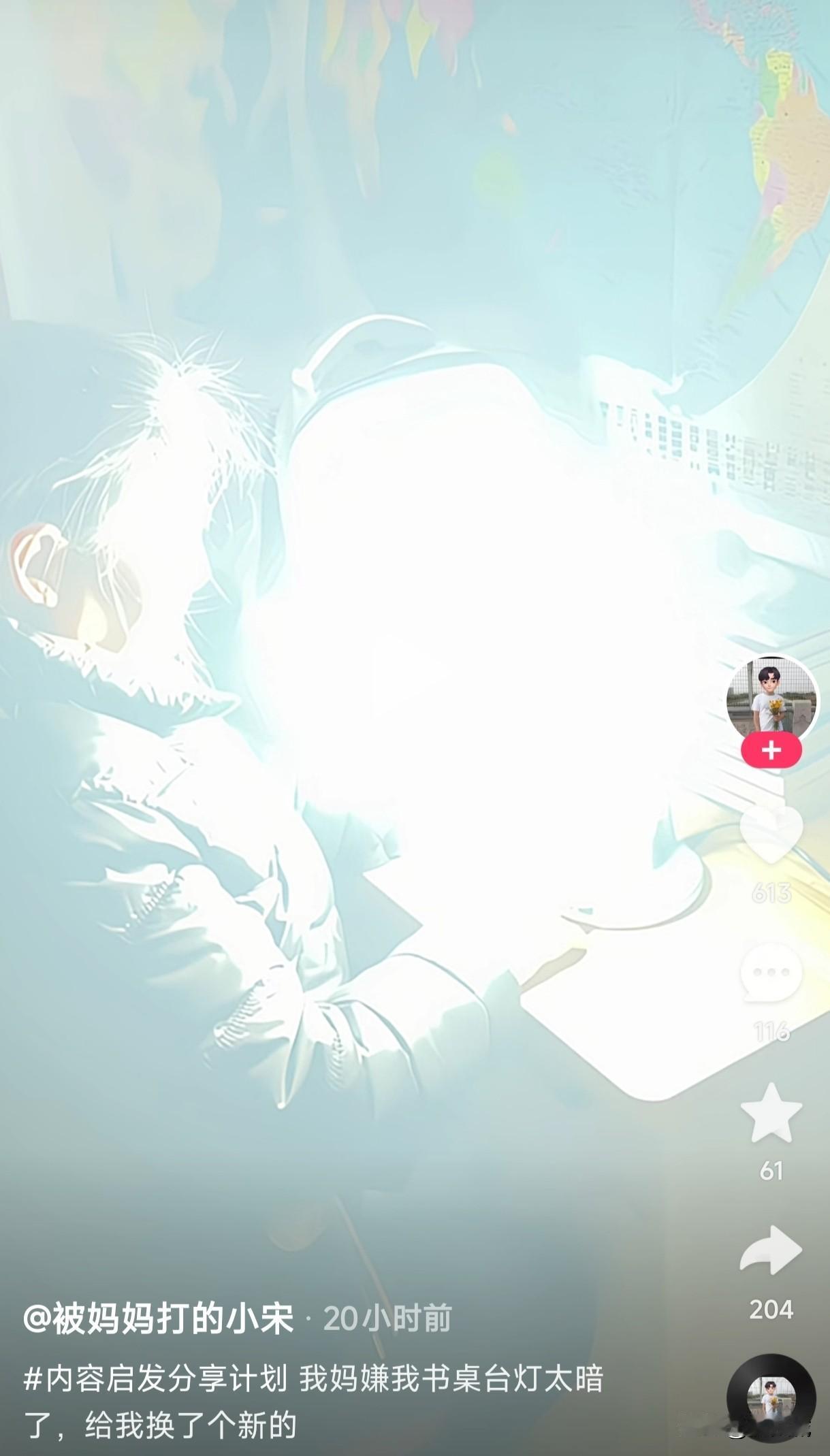 妈妈的爱总是惊人的 嫌弃女儿书桌上的台灯太暗 换了一个大功率灯泡后 女儿的前途被照的一片光明 这一幕是不是连妈妈都没有想到 这灯亮的太刺眼还能看的清书本吗 是不是有点好心办坏事的感觉了 这不得让孩子瞬间原地笑话死了 这究竟是好心换灯泡的 还是故意来搞笑的