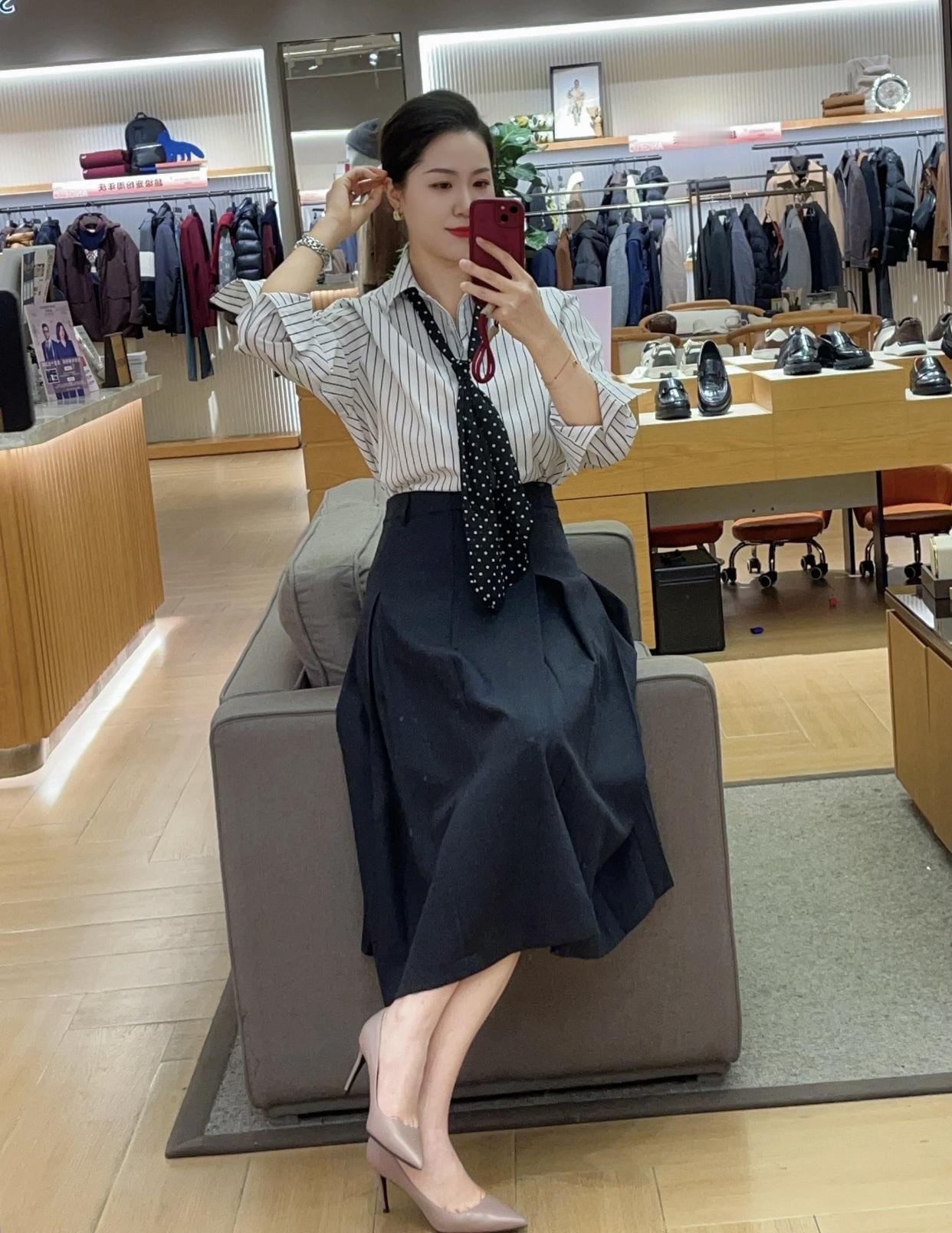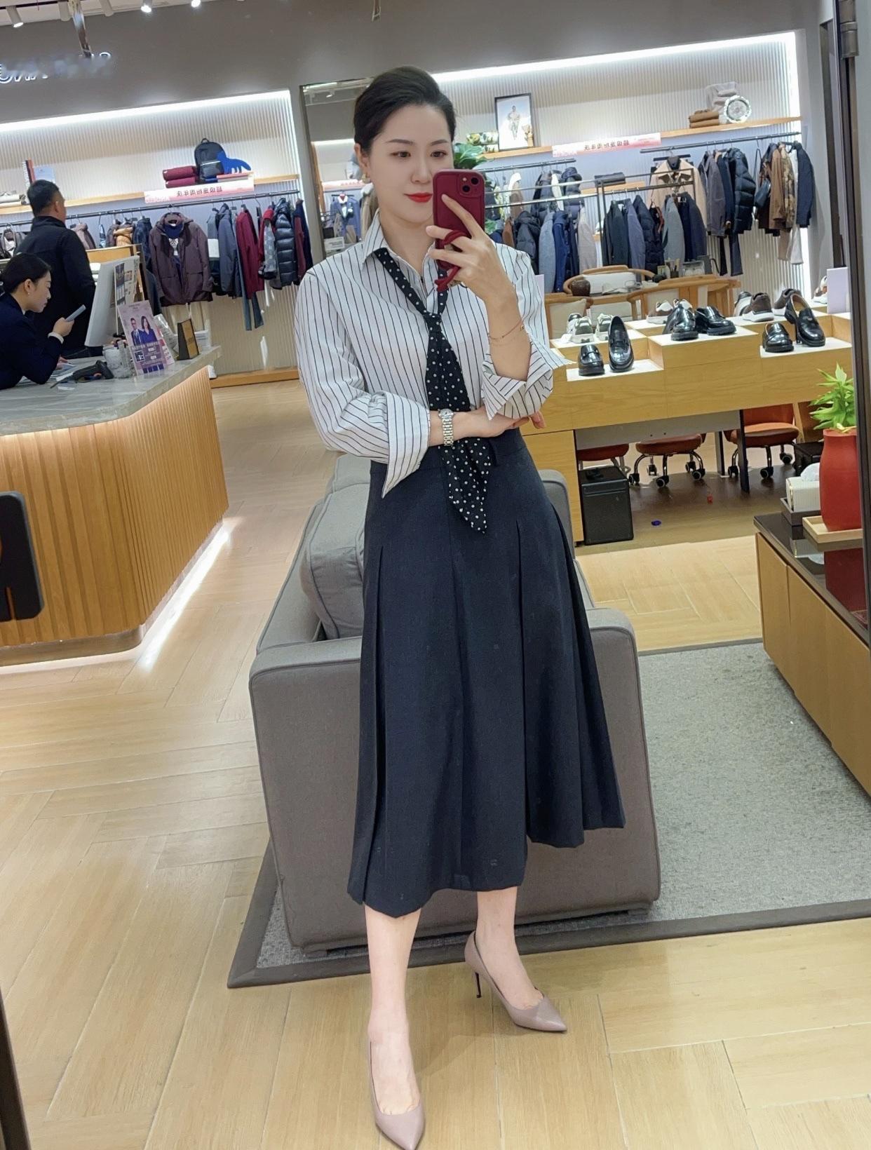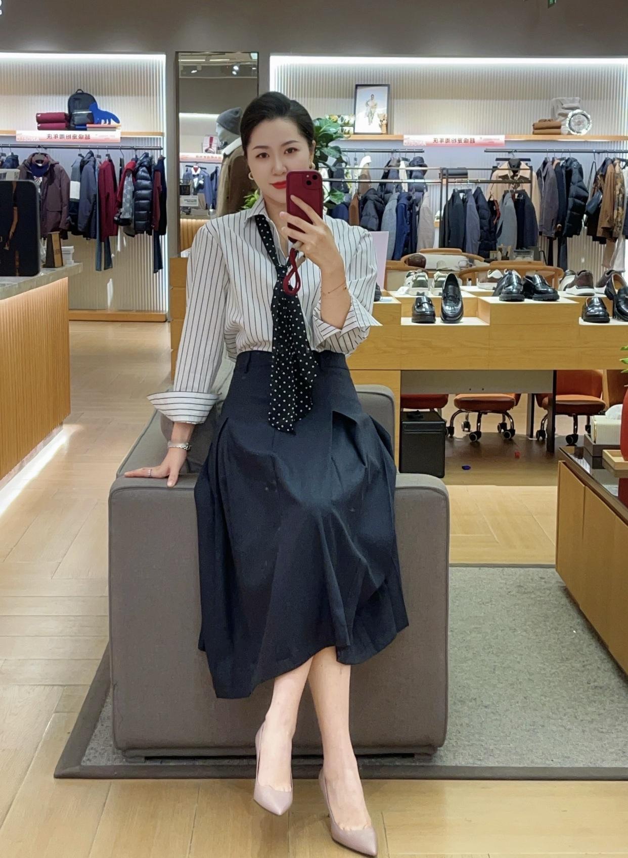 优雅职场穿搭,条纹衬衫+波点领带,尽显时尚魅力!