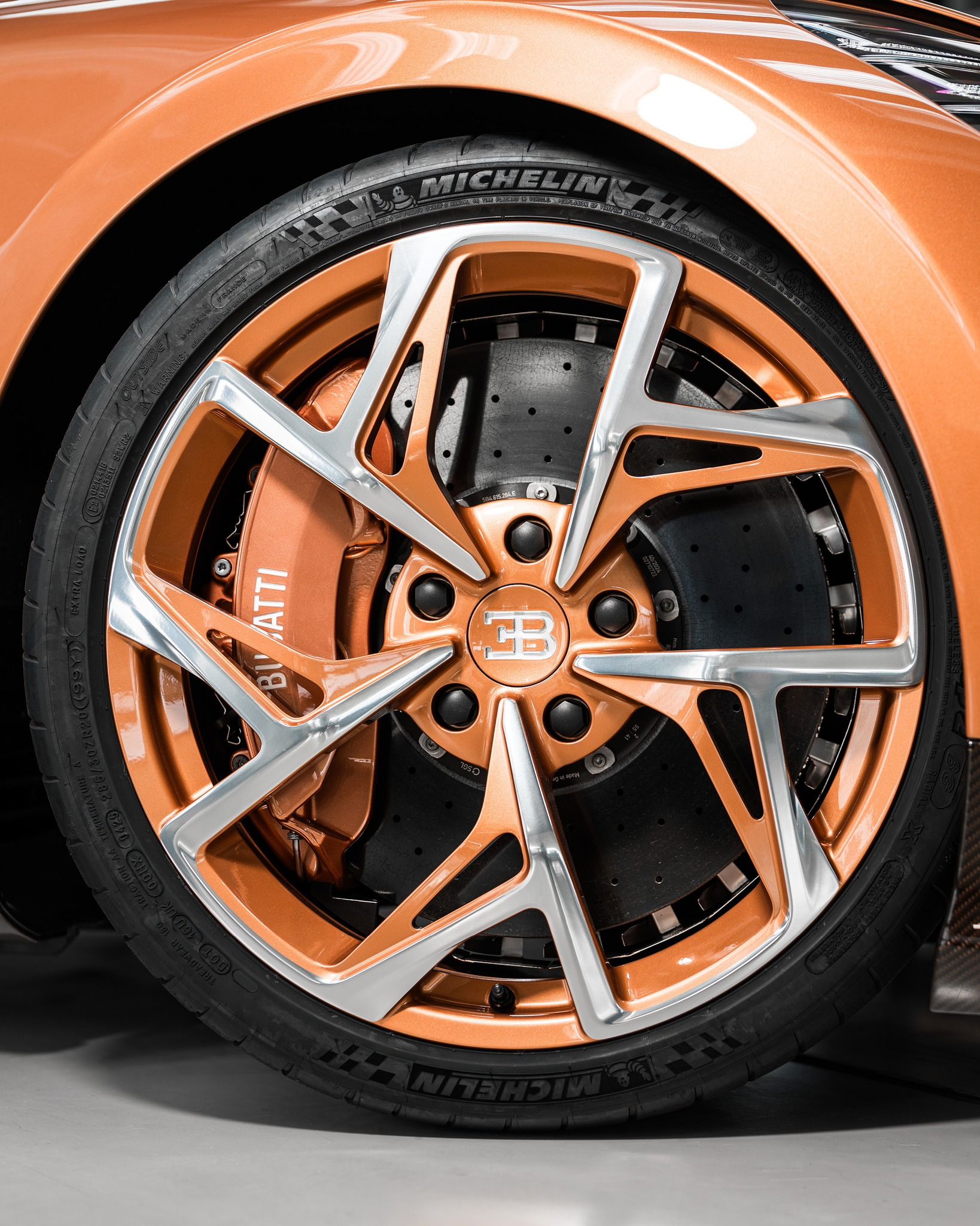 地表最强布加迪,车身采用高强度铝合金,搭配标志性马蹄形格栅和流线型前脸,橙色涂装