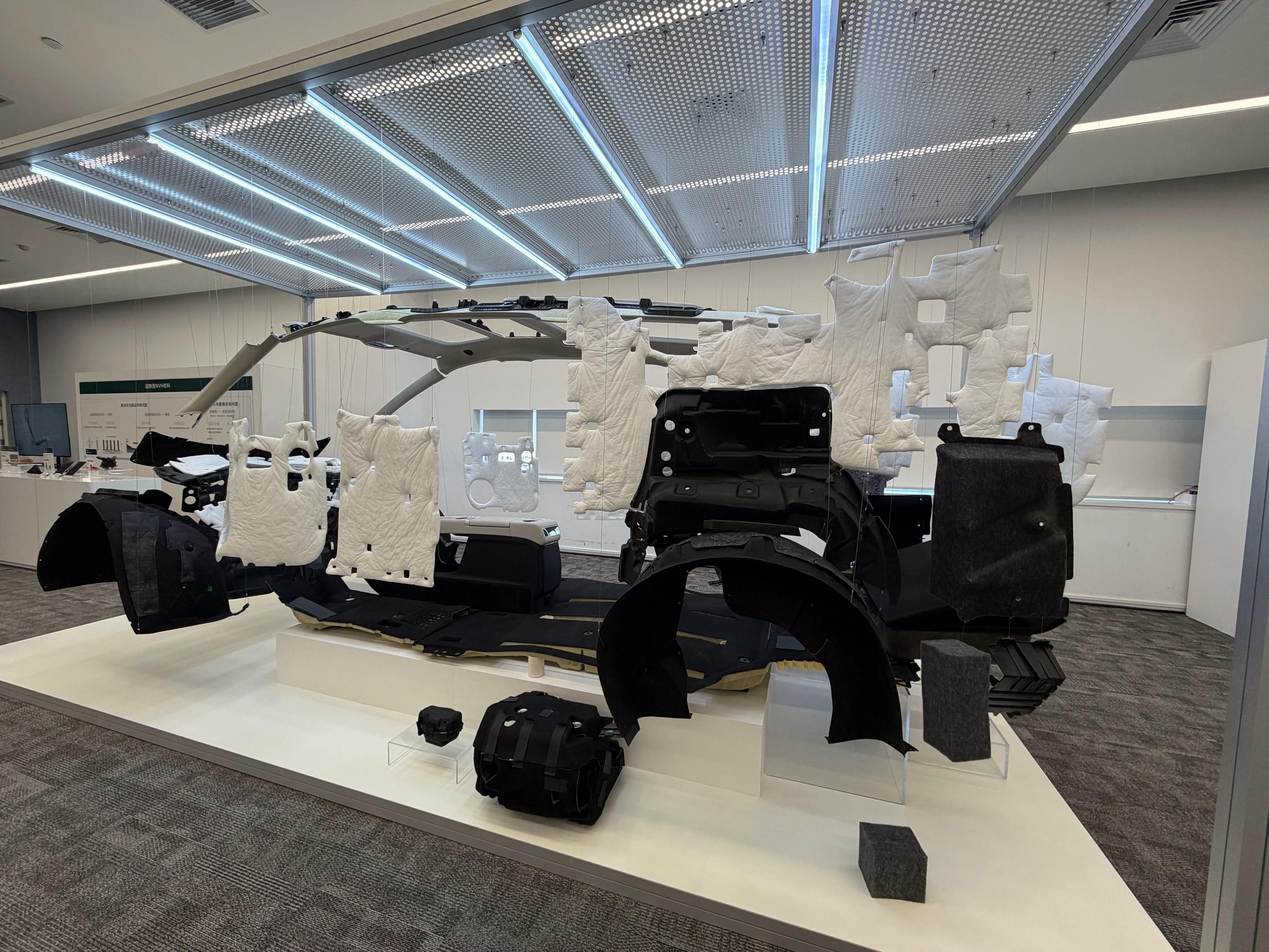今天参加的是一个高端局,理想汽车材料技术日,听点发布会上没讲的内容。材料能做什么?主要就是应用在安全、减重、环保、静音等方面。MEGA为什么能在NVH评测中获得第一,看看理想MEGA声包可能就能明白一些了。地上两个黑色的包裹件大的是驱动电机包裹件,另外一个小的是冰箱压缩机包裹件理想是第一个在车上用压缩机包裹件给冰箱压缩机降噪的。一个汽车企业有微生物实验室就足以说明对环保的重视。VOC分析间,两台设备160万,主要就为了降低车用材料的气味排放。在自研层面做的也不少,比如自研不锈钢油箱和清华大学一起自研的2000IH热成型钢等。低碳环保技术储备层面可以分享几个材料占比数据,10%、75%、100%、45%-70%,这些都是理想汽车为后续量产做的准备。10%:咖啡渣+高分子材料做成的生物基填充PP,可以做内饰板75%:竹子做成的竹纤维复合材料,同样可以做汽车内饰板100%:玉米+高分子材料做成的生物基PE,可以做汽车的风道等45%-70%:再生铝做成的汽车轮毂。虽然今天没车,但对车又有了新的理解。理想材料研发成果大盘点