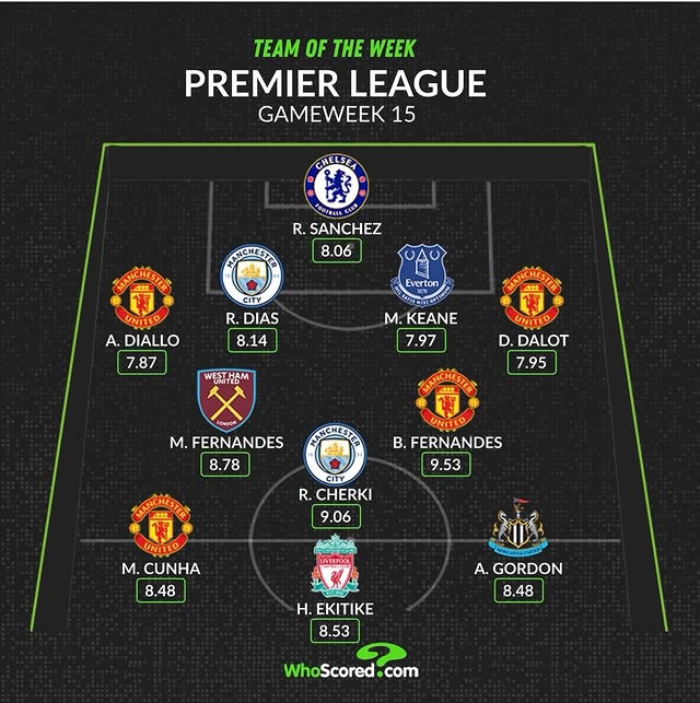 WS英超第15轮评分最高阵容:B费、谢尔基、埃基蒂克在列