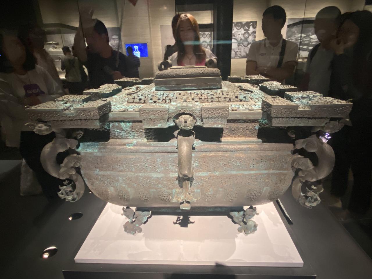 “我们再去武汉吧。”老同志皱了下眉头说:“不冷吗?”我哈哈大笑:“冷就吃火锅呀,武汉人说了,没有一顿围炉火锅解决不了的事,如果有,就两顿!” 就算外面冷,博物馆也不冷,我们上次去湖北省博物馆的时候,没来及逛完就到了闭馆时间,意犹未尽呀! 镇馆之宝仅一把越王勾践剑就让我感到来一趟太值了,是什么神奇的铸造工艺,让这把跨越两千多年的菱格暗纹宝剑,至今依然锋利无比。 那个镇馆之宝之一的战国时期曾侯乙尊盘,工艺精湛复杂到令人叹为观止,是先秦时期青铜器的巅峰之作。 曾侯乙编钟被中外学者称为古代世界“第八大奇迹”,它的出土改写了世界音乐史。 十件镇馆之宝,都来自于远古,以前总觉得两千年前的远古远到不可思议,但是在这里居然可以近到用眼睛触摸,恍惚间就觉得自己穿越了。 过足了眼瘾,就去过嘴瘾,一碗热腾腾的莲藕排骨汤喝下去,再配上三鲜豆皮,顿时觉得人生又圆满了回。