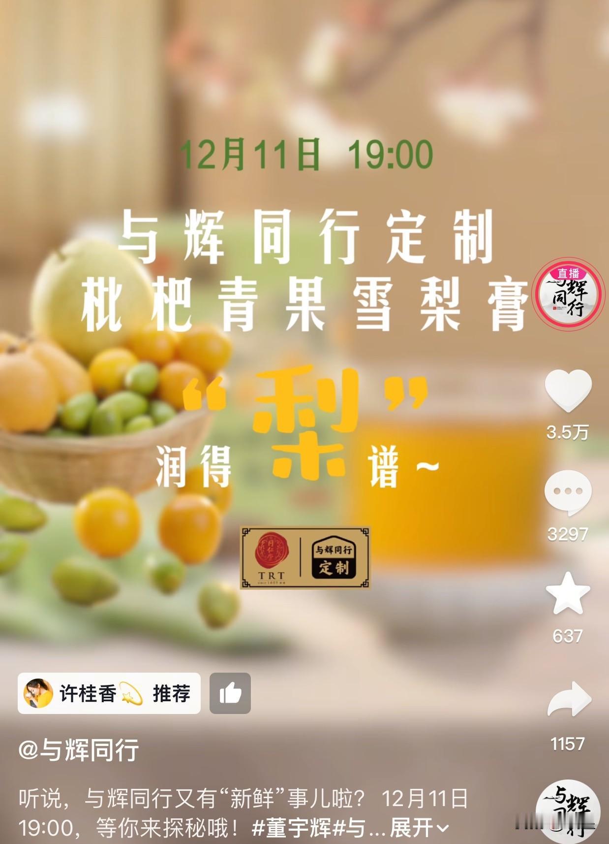 与辉同行的宣传片真是风格多样 今天定制雪梨膏的视频一出来 笑翻了一堆人,汉森也太
