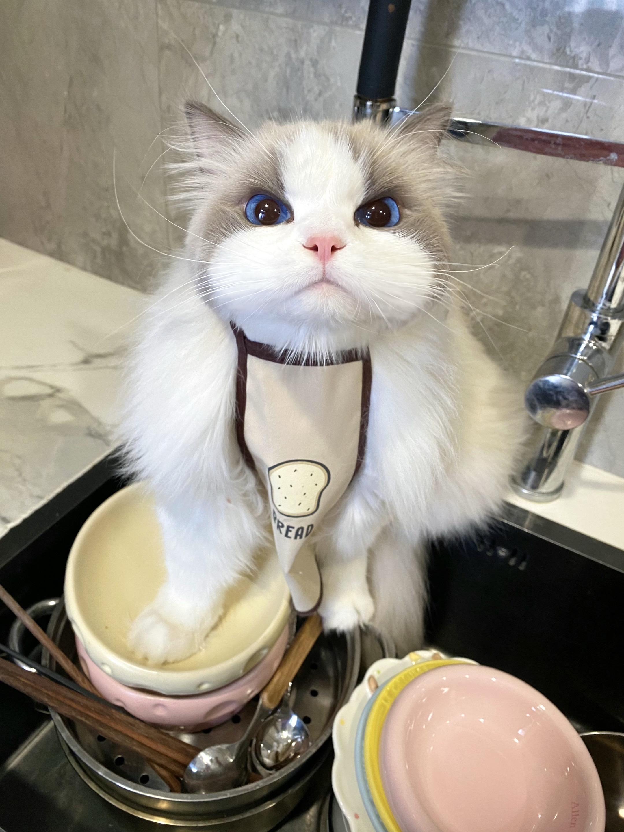洗碗水弄到他身上 气的直接站碗里。生气归生气 还是知道给麻麻送厕纸 🐱:看你老了谁照顾你 哼