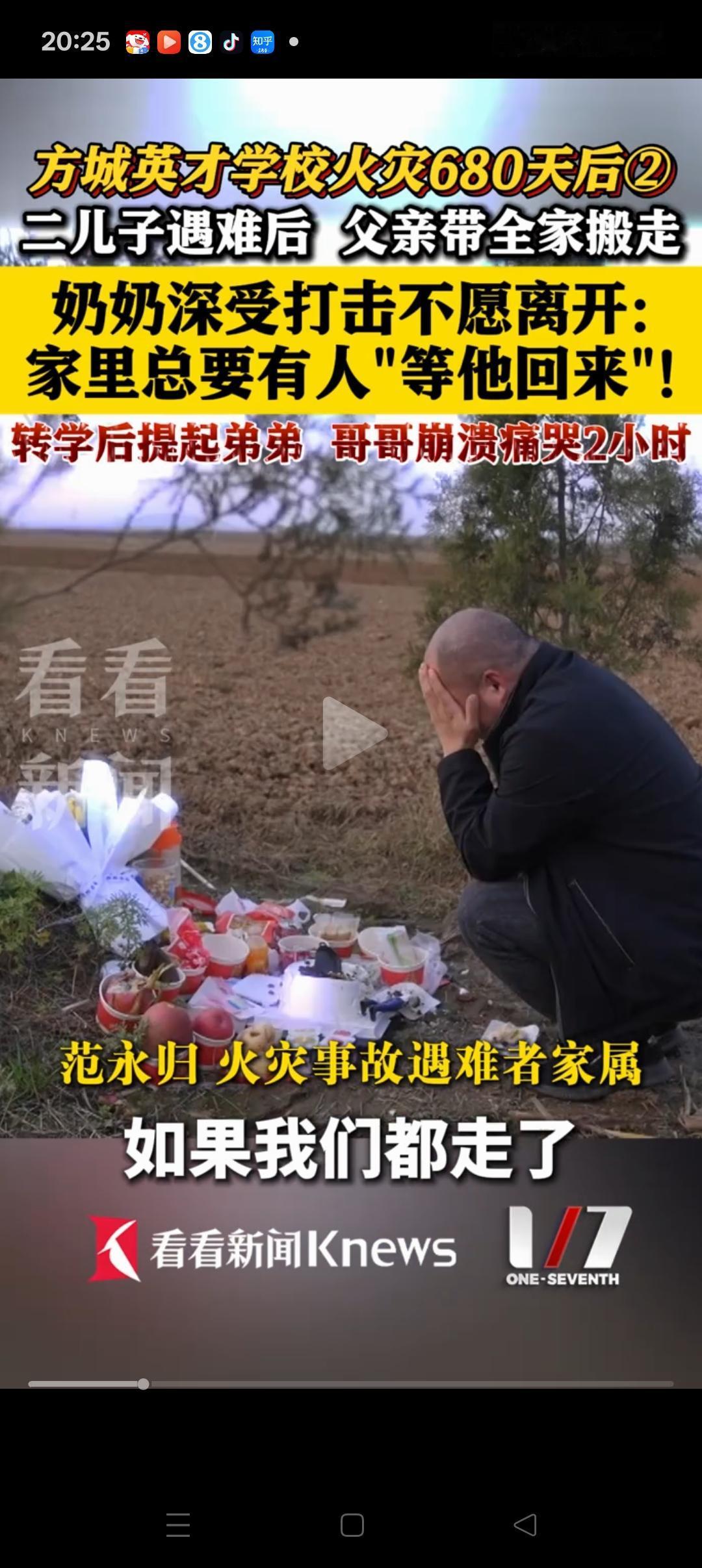 方城火灾680天后, 这位爸爸哽咽说出:孩子奶奶依然不愿意离开老家,只为了“等他回家”。她说家里一定要留一个人,要不然孩子回来会找不到她。[流泪] 原来哥哥和弟弟是读的同一所学校,弟弟也是奶奶一手带大的,感情特别的深。 自从事情发生后,奶奶一直情绪低落,也不愿意和家人一起搬到城里,只想留在老家,等他回家。 现在事情已经过去了680天,依然没有结果,她们一家都在等一个真相,希望能够早点到来。。 这也是所有人都期望的,大家觉得呢?